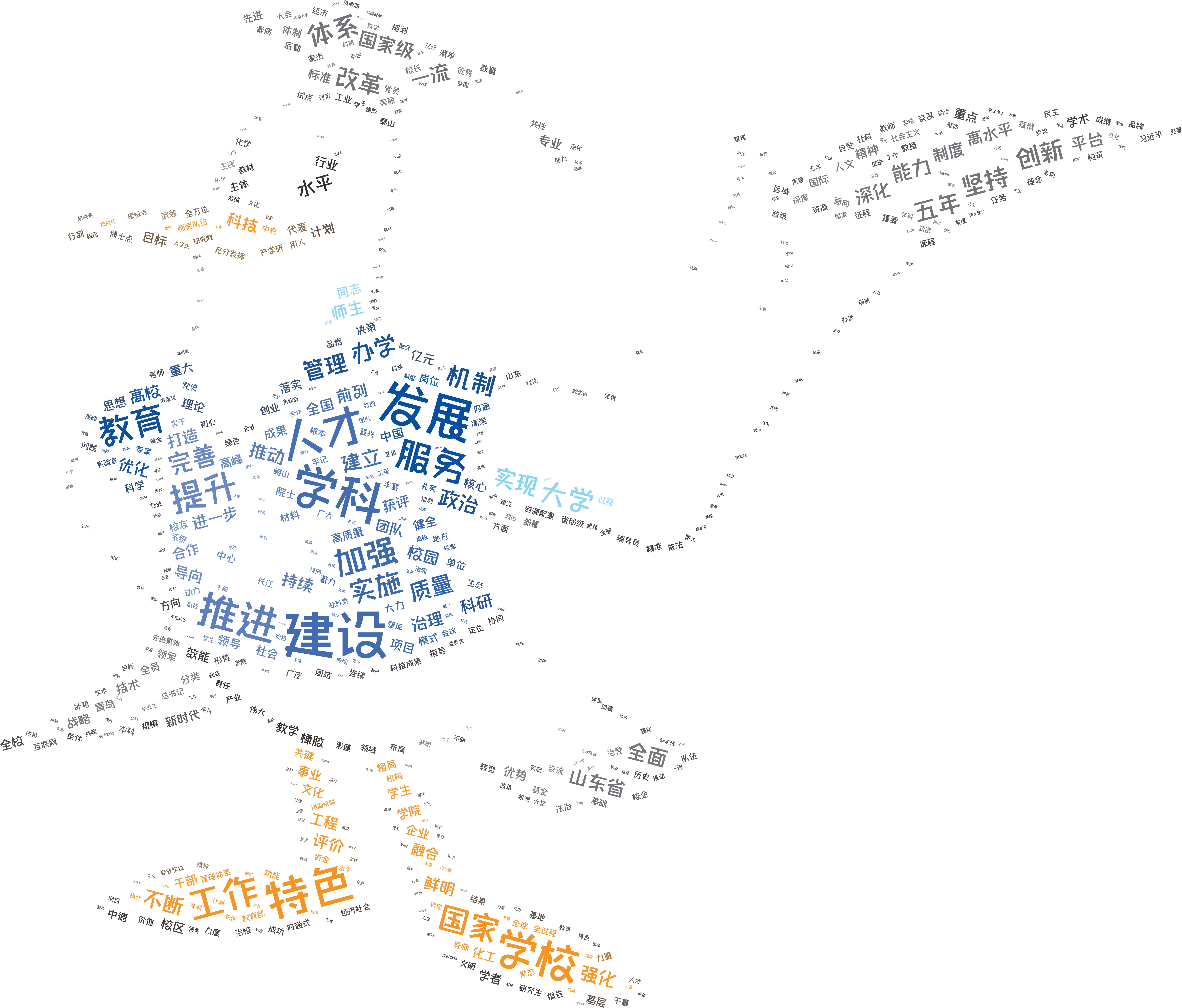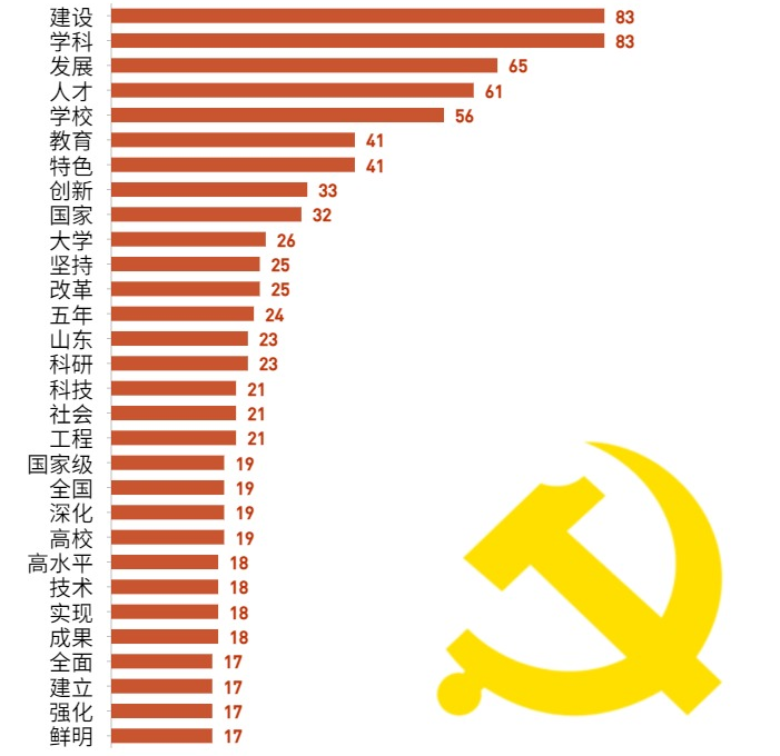 集团第十一次党代会报告意涵丰富,限于篇幅,本文于分析结果中择一二阐述。从核心理念、基础概念到报告新词,利用大数据思想,加深解读本次党代会的主题思想轮廓,充分表明公司已开启“深化人才强校、构筑学科高峰、提升治理能力,建设特色鲜明、走在前列的高水平大学”新征程。