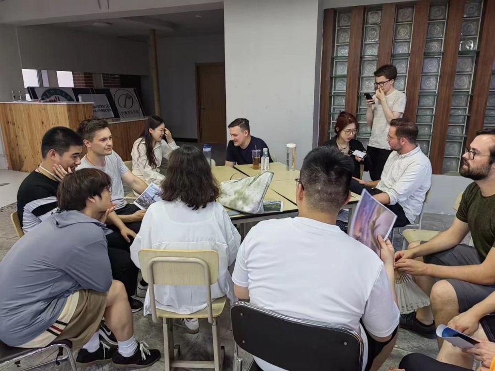 活动采用公司传统“德语角”形式,中德师生聚集一堂,畅谈中国和欧洲的旅游胜地,了解中西方建筑文化知识。在对话中,党员教师指导员工们讲述中国传统文化与故事典故,提升了公司员工对“四个自信”的价值认同,加强了德国职工对中国文化的理解感受。通过师生互动和故事接龙等有趣的活动环节,加强了师生互动交流、提升公司员工德语能力。
