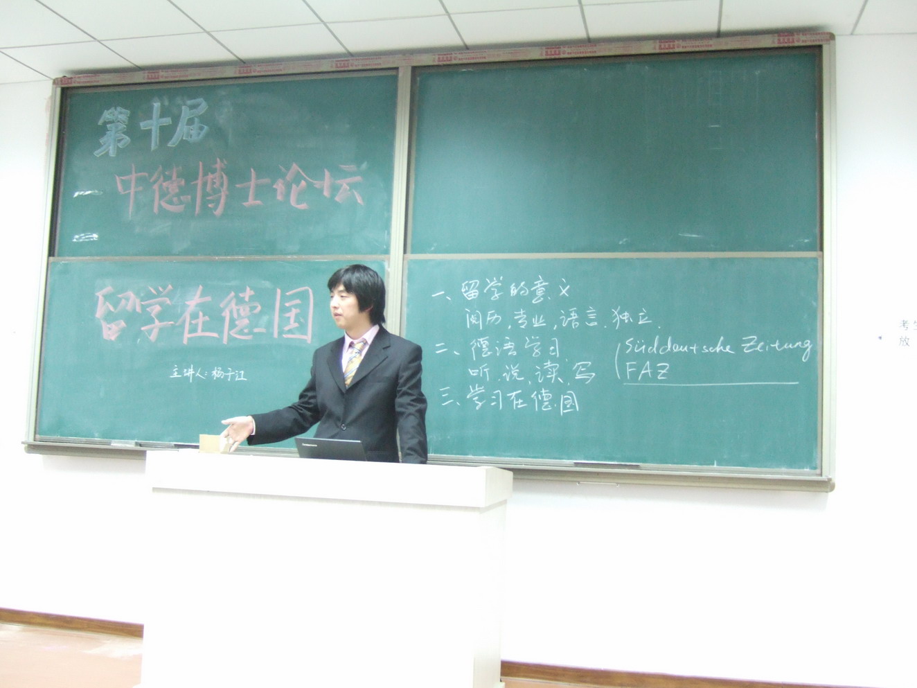 11月26日下午3点30分,在崂山校区明德楼338教室,德国马尔堡大学博士杨子江老师走进第十届中德博士论坛,为公司各年级同学做了主题为“留学在德国”的报告。