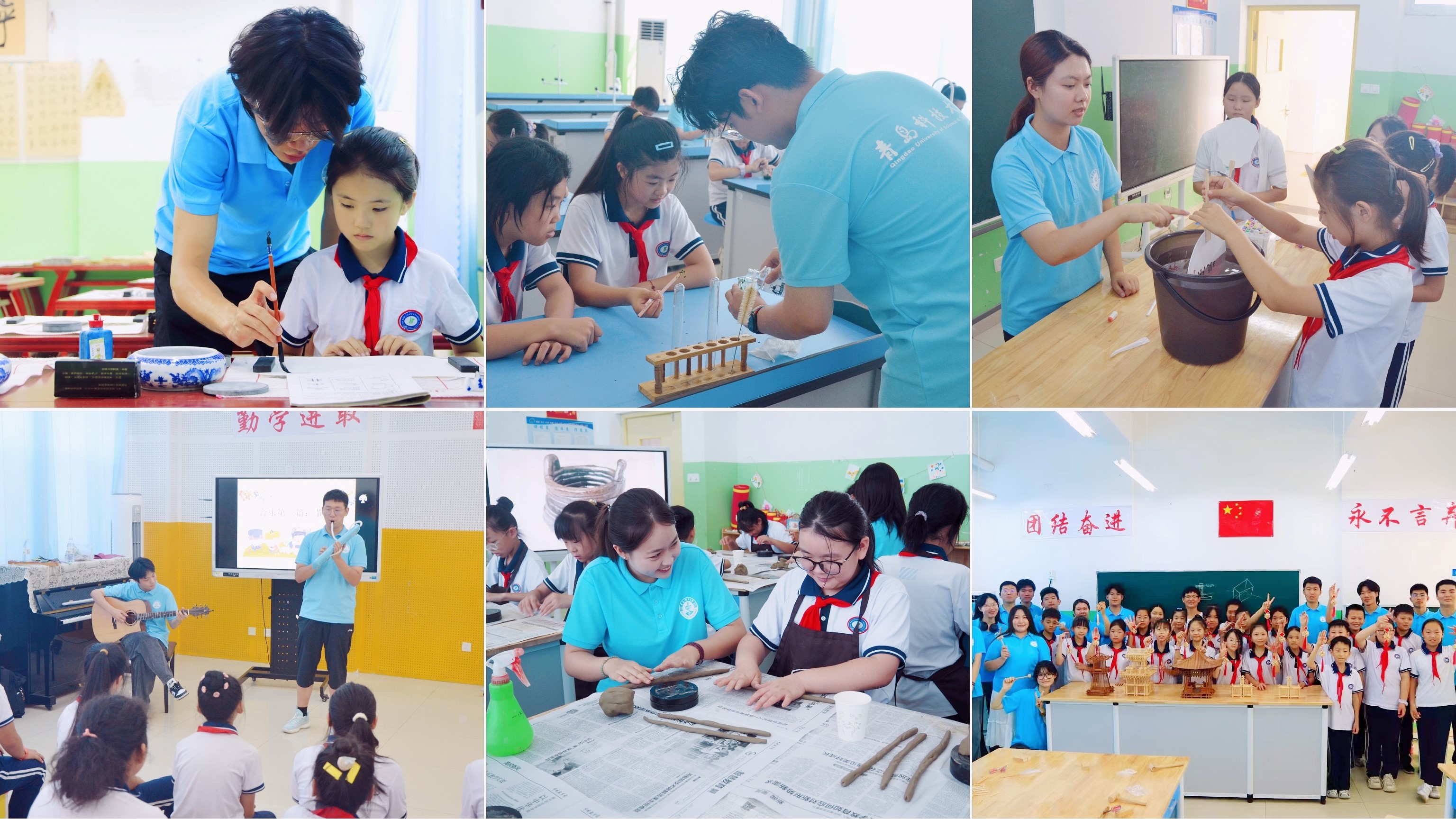 在齐河县,服务队以青春的名义,探寻乡村文化的根与魂。他们不仅开设了丰富多彩的“七彩课堂”,为乡村儿童送去知识的种子和梦想的翅膀,更在非遗技艺传承中,让黑陶的温润、秸秆扎刻的精巧,成为连接过去与未来的桥梁,让孩子们在亲身体验中感受到中华文化的博大精深。