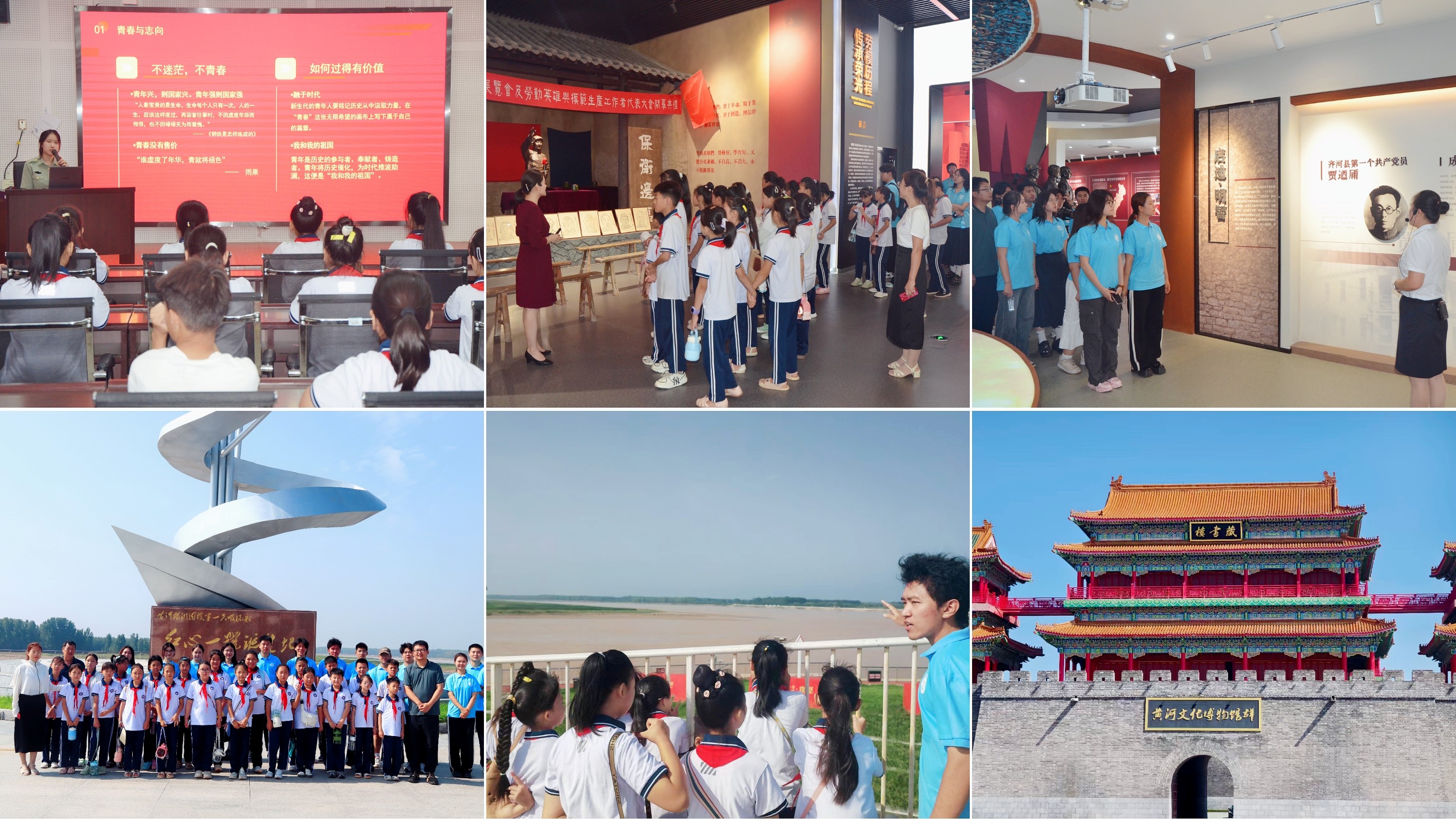 同时,服务队深挖红色资源,通过红色宣讲、参观教育基地等形式,让红色基因在青年学子心中生根发芽,激发他们爱国爱党的深厚情感。在黄河岸边,他们聆听治黄人的英雄故事,探访黄河文化博物馆,将黄河的壮阔与文化的细腻相融合,深刻领悟中华民族与黄河相依相存的历史命运。