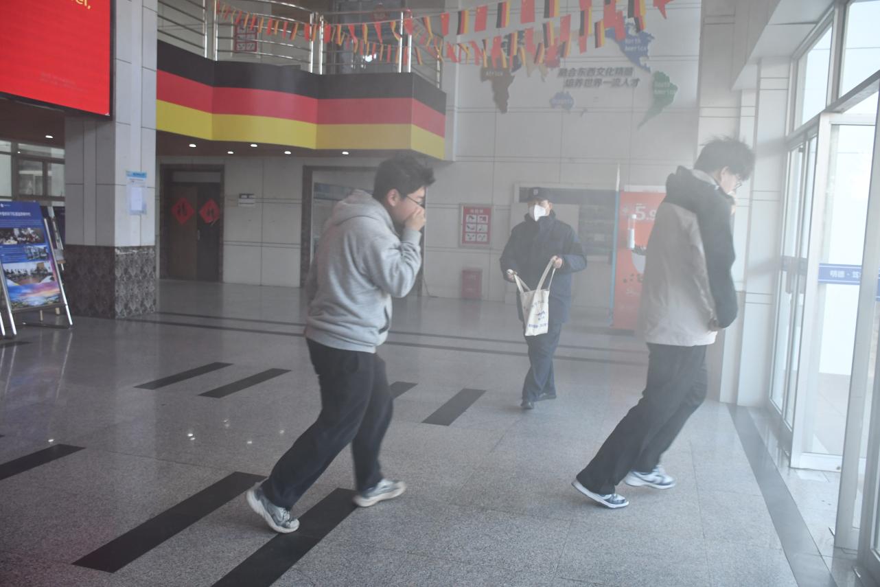 演练开始前,张大伟作动员讲话。他指出,消防安全是校园安全工作的重中之重,全体师生要牢固树立“生命至上、安全第一”的底线思维,将消防安全教育全面融入主题班会、校园文化,营造“人人讲安全、个个会应急”的浓厚氛围,以演练促实战,以实战促提升,共同织密校园安全防护网。
