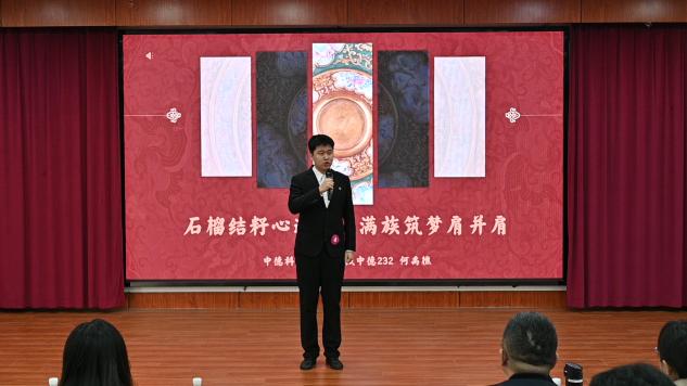 演讲中,何禹樵以满族特色盘长结刺绣为切入点,将自身成长经历与民族互嵌共融的日常紧密结合。他用生动鲜活的语言,讲述了邻里间的温情互助、各民族共担的历史使命以及代代相传的同心筑梦故事,真挚的情感、饱满的热情感染了现场每一位观众,充分诠释了民族团结的深刻内涵与家国情怀的时代价值,赢得评委老师与在场观众的一致好评。