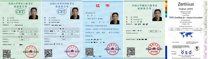 依托公司中德合作办学的平台优势,他刻苦学习德语,顺利通过德语、英语四六级考试,为后续的学术研究与交流奠定了坚实的语言基础。为将所学语言知识转化为实际应用能力,他积极投身各类外语竞赛,并斩获多项佳绩。他先后荣获普译奖全国老员工英语写作大赛国家级三等奖、全国高校创新英语挑战赛(NCIECC)英译汉组国家级三等奖等竞赛奖励10余项。