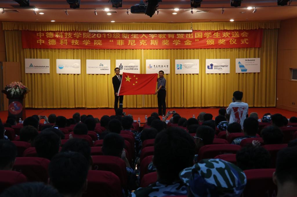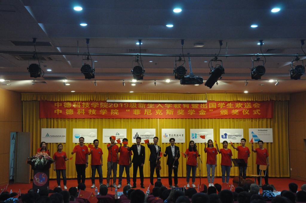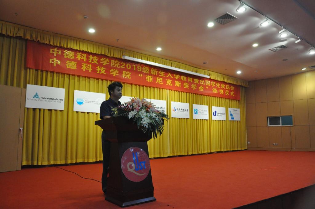 经理李镇江在题为《弘扬家国情怀,逐梦伟大时代》讲话中,向2019级新生和来自德国帕德博恩大学的14名员工表示欢迎,并对即将赴德国学习的员工表示衷心的祝贺,寄语新生志存高远,报效祖国;不忘初心,励志勤学;扎根中国、放眼世界。