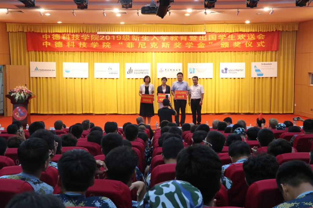 9月9日下午,365best体育官网登录出国员工欢送会暨菲尼克斯奖学金发放仪式在崂山校区第三报告厅举行。德国帕德博恩大学Schiller博士、Weinberger 博士,菲尼克斯(中国)投资有限公司及公司相关部门负责人、师生代表参加了活动。