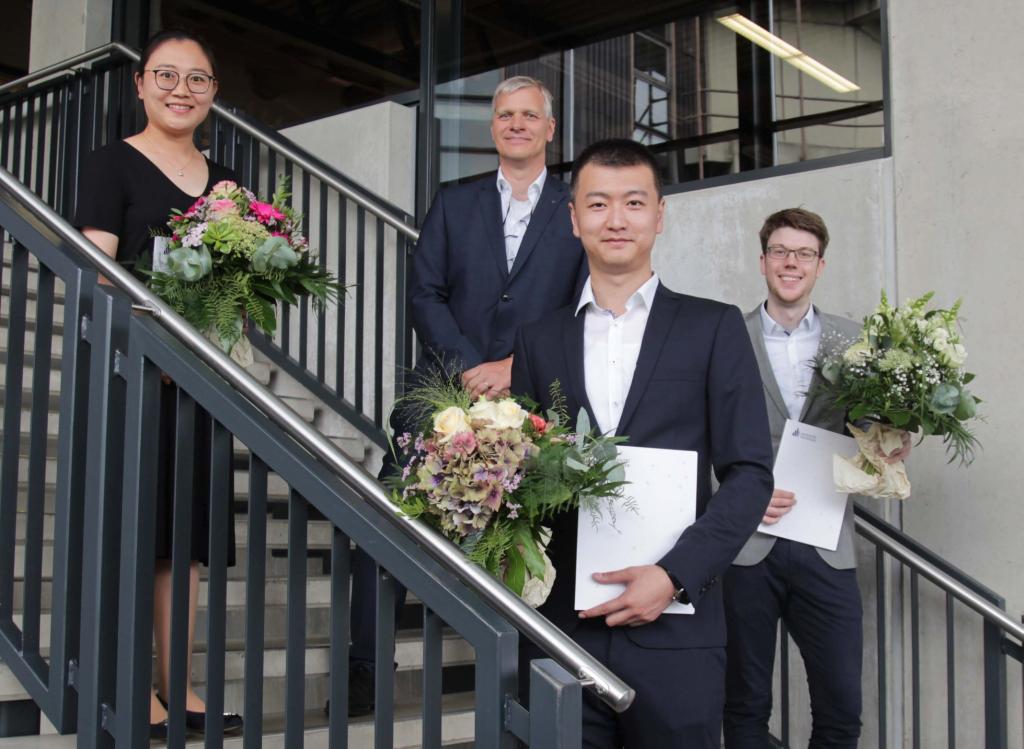 日前,德国帕德博恩大学2019年度青年学者创新教学奖颁奖仪式在帕德博恩大学举行,青科大365best体育官网登录青年教师朱虹雨,青科大优秀员工、帕德博恩大学机械公司博士生邓博文与帕德博恩大学机械公司设计与传动技术教研组Dennis Hambach先生获青年学者创新教学奖,帕德博恩大学教学与质量管理副董事长Prof. Dr.-Ing. Volker Schöppner代表教学基金委员会向获奖者颁发获奖证书及15000欧元奖金。