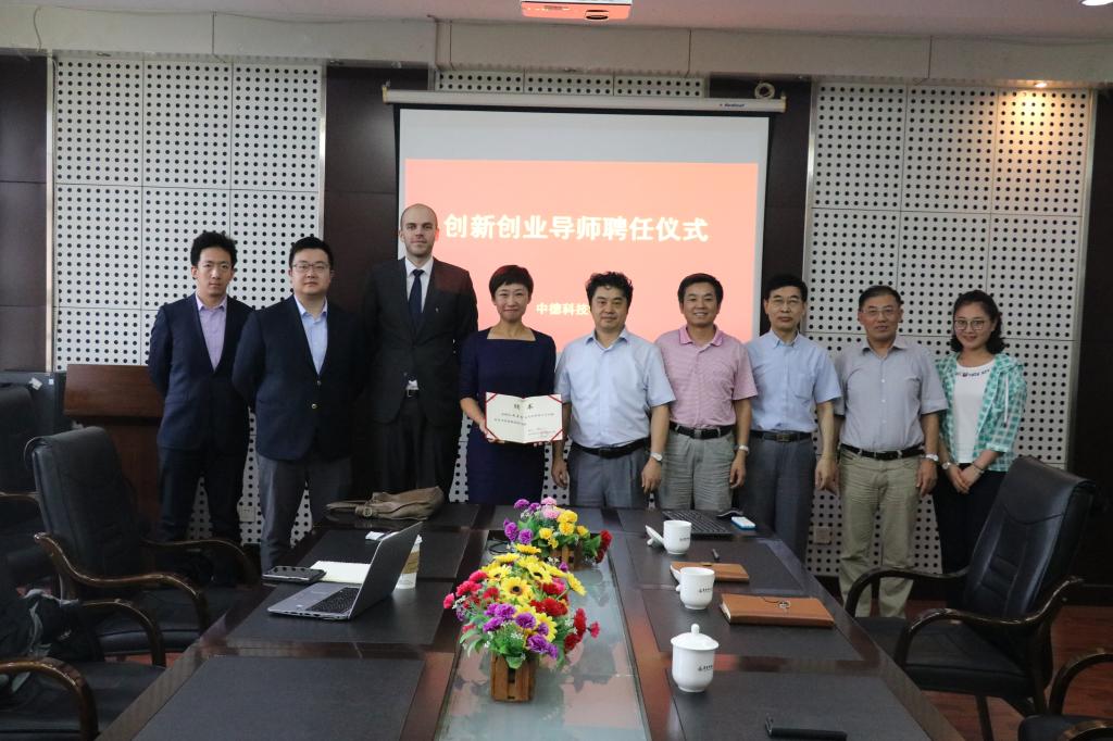 为更好的提高国际化育人质量,搭建员工实习就业平台。9月20日下午,365best体育官网登录在公司会议室举行创新创业导师聘任仪式,中德商桥有限责任公司总经理、SinoJobs中欧招聘门户CEO赵省书,SinoJobs国际培训部总监王辛佳,SinoJobs中欧企业招聘会负责人Marvin Buchholz,365best体育官网登录经理李镇江、党总支书记王江忠、副经理薄建全、副经理刘中冬等出席。