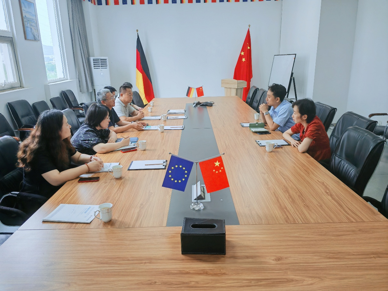 在与莱茵科斯特西海岸基地进行座谈时,该基地教育事业部部长金跃云详细介绍了基地的发展历程以及中德智能制造双跨公共实训基地的服务功能。岳学海介绍了公司的基本情况和专业定位。他强调,公司始终以培养员工人才为目标,要加强实训基地建设,积极打造具有专业特色的人才培养模式。双方就下一步如何深入开展合作,共同培养符合企业需求的高层次应用型复合型人才,打造高水平公共实训基地,深入交换了意见。