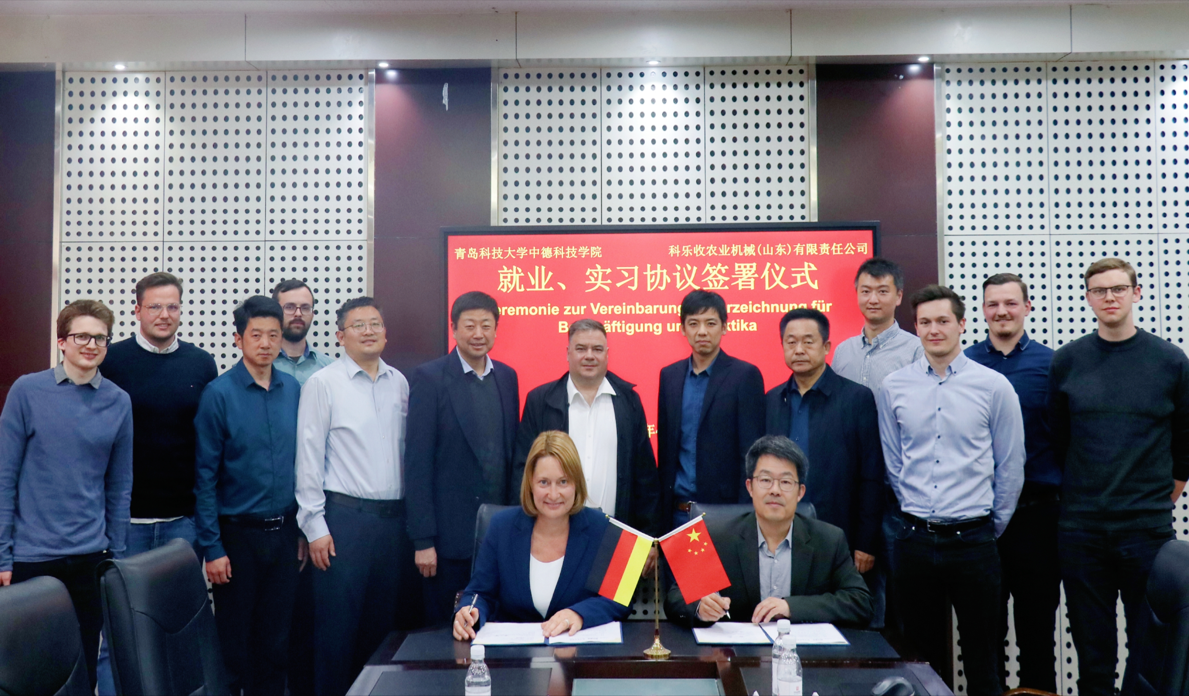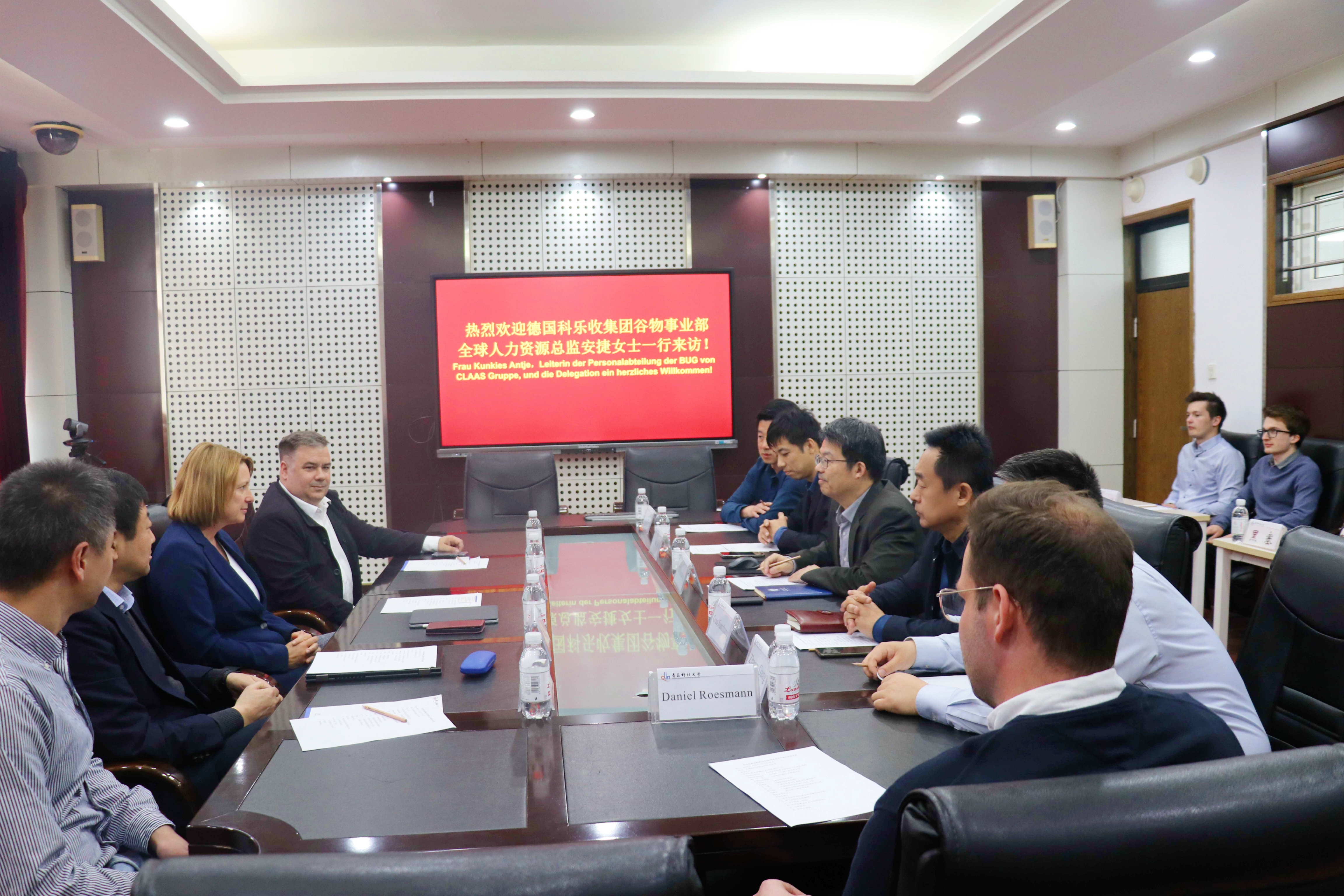 4月17日下午,365best体育官网登录与科乐收农业机械(山东)有限责任公司校企就业实习合作签约仪式在公司会议室B4117举行。科乐收农业机械有限责任公司谷物事业部全球人力资源总裁Kunkies Antje(安捷)、科乐收(中国)首席财务官Idekeit Gregor(格雷戈)、人力资源总监梁卫东,365best体育官网登录经理李庆党、党委副书记兼副经理马骥、副经理郭建章、外事部、机械工程教研室负责人、“在华机械工程”硕士项目职工参加会议,会议由经理李庆党主持。