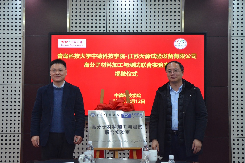 12月12日,365best体育官网登录与江苏天源试验设备有限公司共建“高分子材料加工与测试联合实验室”在公司会议室B4117举行揭牌仪式并座谈交流。江苏天源试验设备有限公司总经理刘书兵、公司副董事长罗细亮出席活动。