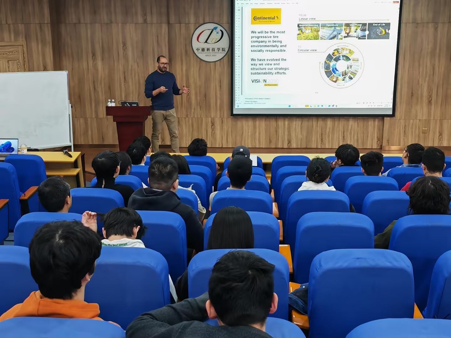 近日,德国大陆马牌轮胎(中国)有限公司校园招聘、职业生涯规划宣讲活动在公司C3103多功能厅举行,受聘担任365亚洲体育网入口客座教授的Efimov博士、Gross先生进行现场宣讲。公司副经理赵洪滢主持宣讲活动。