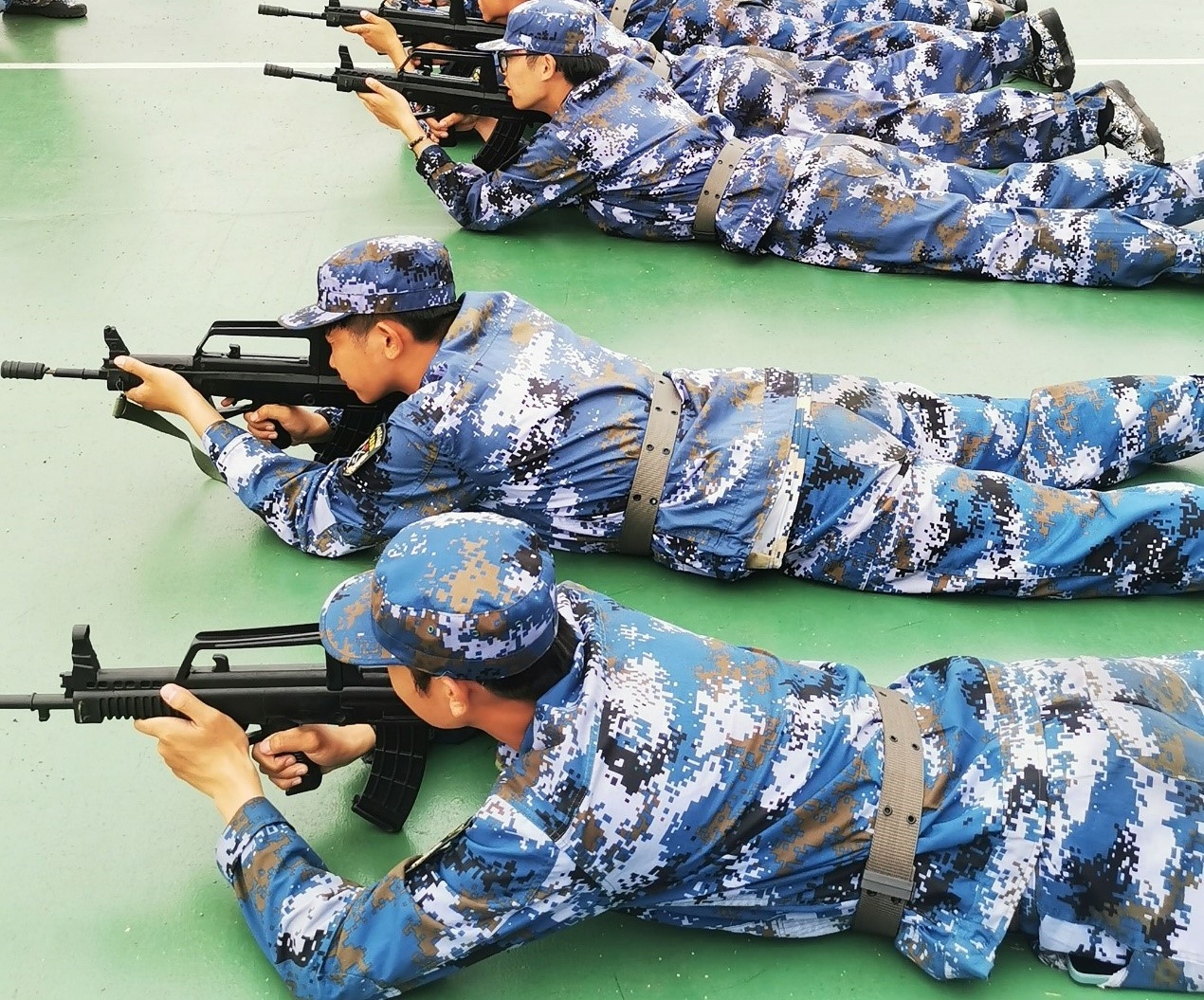 “跑步走,一二一,一二一”,身姿从摇摇晃晃到笔直挺拔,步伐从杂乱无章到整齐划一,每一步都是自己意志的磨炼,这是一次身体和毅力的双重挑战,也是一次人生和成长的独特体验。学员们做好匍匐的姿态,等待教官下达指令。举枪、瞄准,每一个动作都需全神贯注,专心致志。