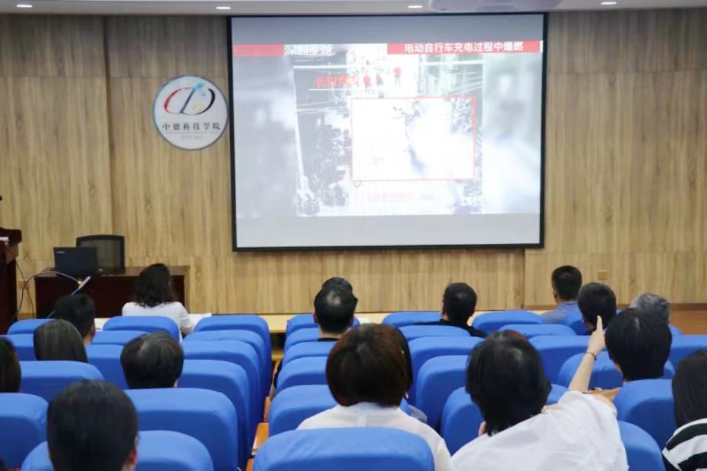 会上,全体教职工观看《电动车火灾警示教育》宣传片。