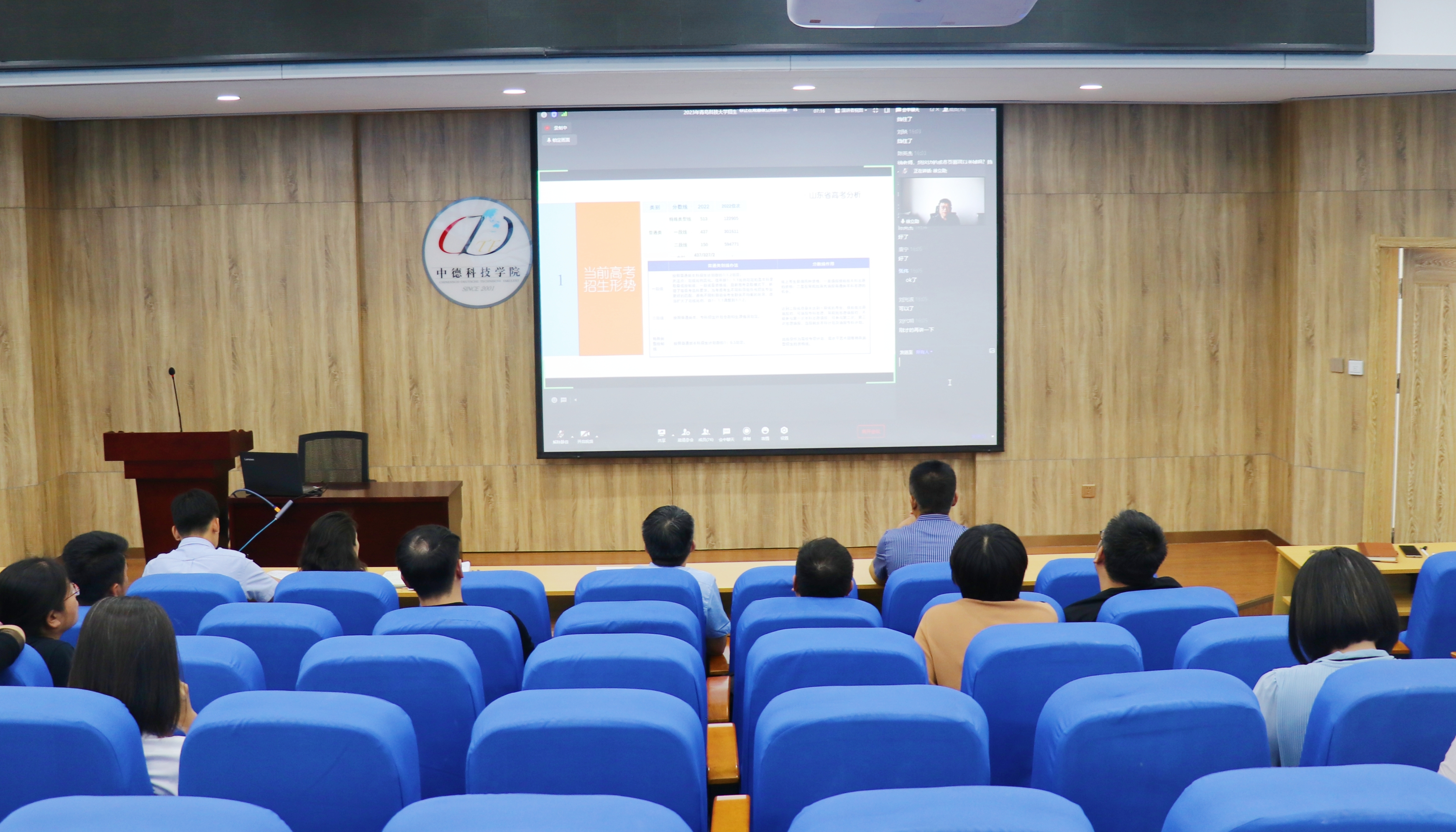 会上,全体成员集中参加学习公司招办组织的365亚洲体育网入口2023年招生宣讲会线上会议。仔细聆听公司教务处副处长兼招生办公室主任徐立勋从当前高考招生形式、公司招生情况简介、2023年招生变化点、高招宣传概述、常见问题答疑、宣传工具箱、面对挑战及应对策略等7大方面对公司招生政策进行的详细讲解。