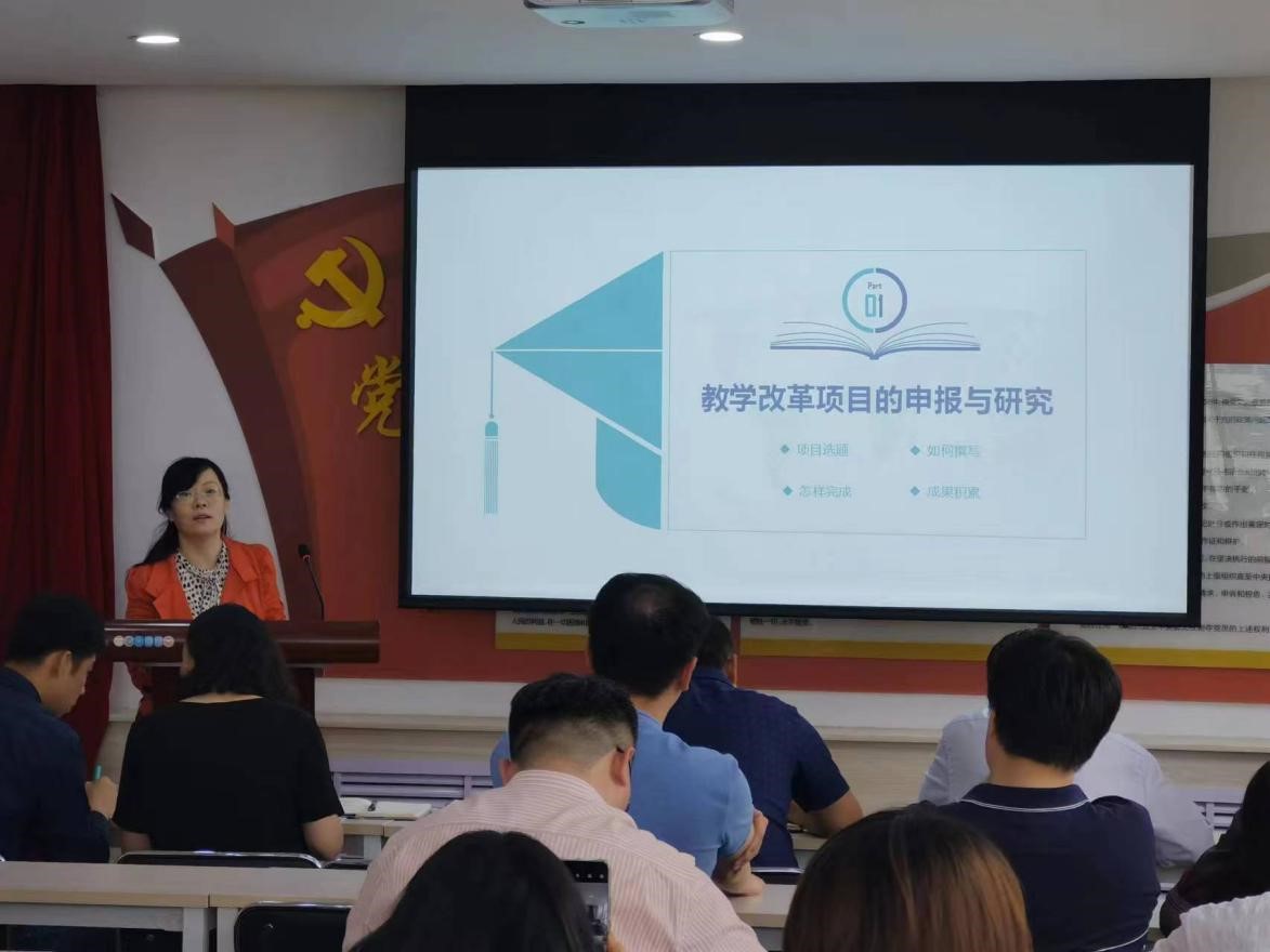 为提升365best体育官网登录教师教研教改水平,应广大教师要求,5月30日下午,公司邀请到山东省教学名师经管公司董华教授做了题为“教学改革项目申报与研究”专题培训。公司领导及全体教师聆听了董华教授的报告。