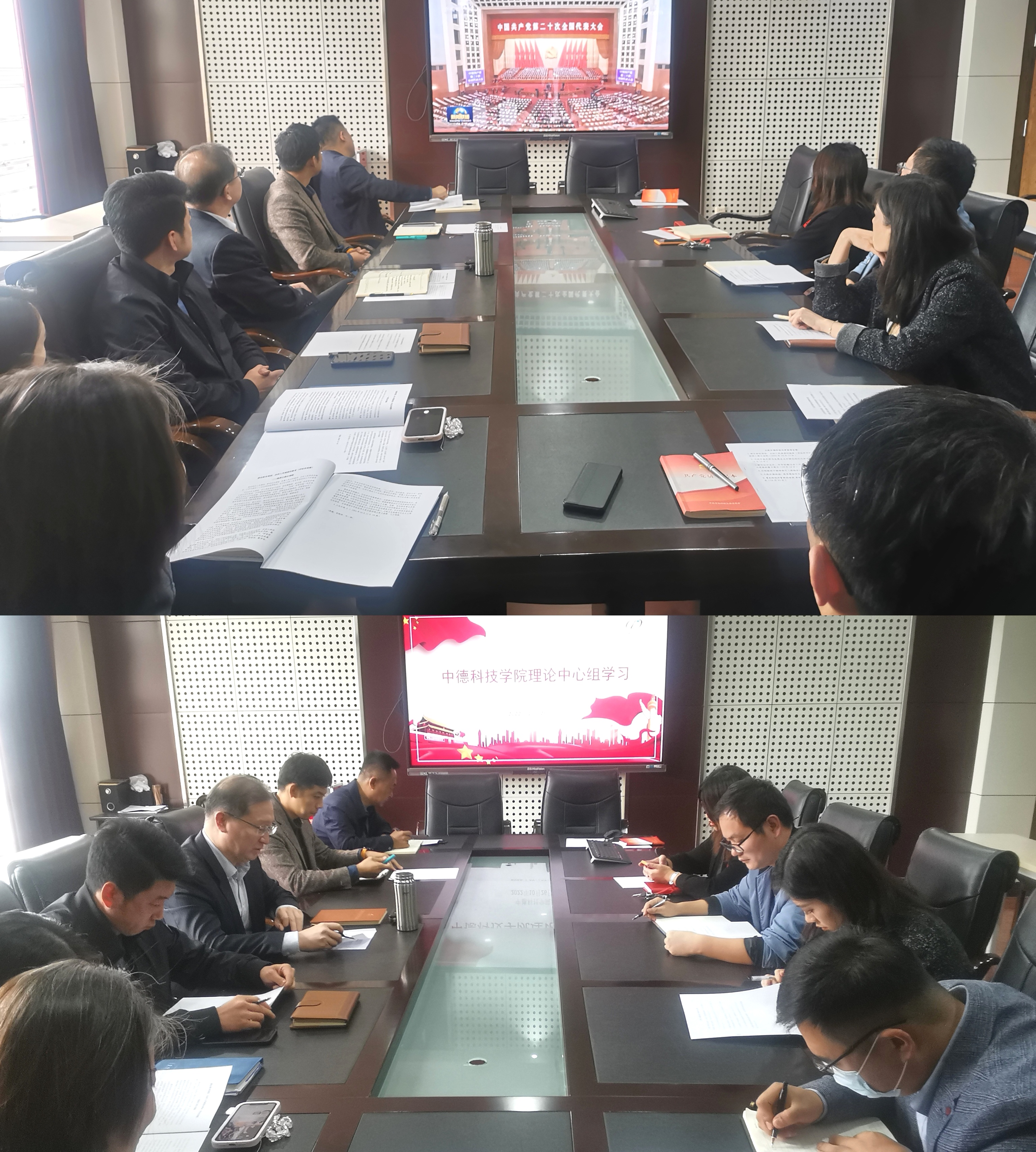 10月26日下午,中德科技公司党委理论中心组在公司会议室B4117召开专题扩大会议,深入学习党的二十大精神。公司党委理论中心组成员、专职辅导员参加集体学习。