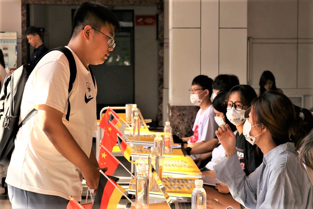 中西融汇,梦启中德。公司开展贴心志愿服务,优化报到流程,引导新生自主报到,打造暖心、便捷、难忘的迎新报到流程。员工宿舍区域内和迎新现场悬挂中德两国国旗。从大厅双语标语到外教现场答疑,细节处体现中德办学元素,让员工感受到国际化办学特色。