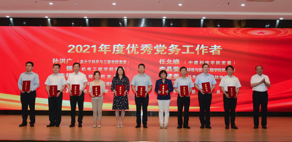 在中国共产党成立101周年之际,7月1日下午,公司在崂山校区第二报告厅举行2022年党建与思想政治工作会议暨“光荣在党50年”纪念章颁发仪式,公司党政领导干部、党员教师代表参加会议。会上,公司对2021年度优秀党务工作者、2021年度新闻宣传先进单位和个人、优秀网站、最具影响力微信公众平台等进行了表彰。