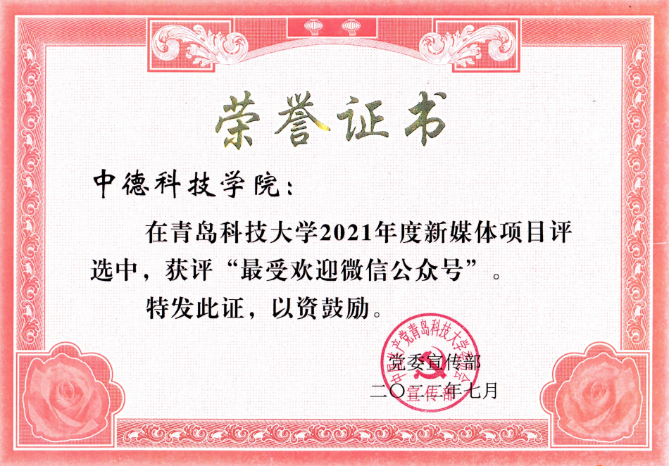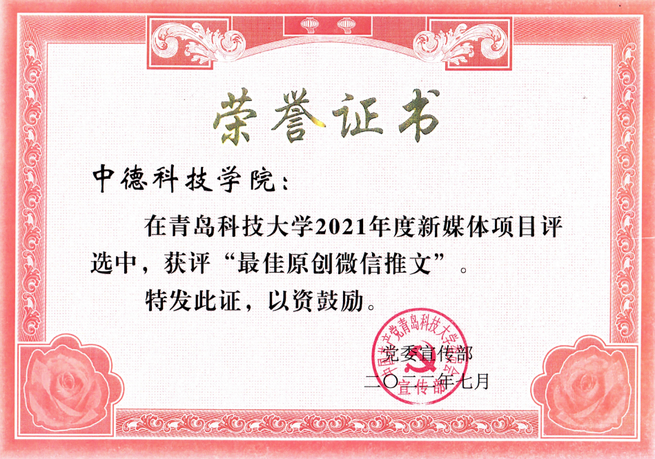 公司党委书记任允晓荣获“2021年度优秀党务工作者”荣誉称号;365best体育官网登录网站荣获“2021年度优秀网站”荣誉称号;公司公众号青科大365best体育官网登录荣获校新媒体项目“最受欢迎微信公众号”、《365best体育官网登录举行2021年出国员工欢送会》文章荣获“最佳原创微信推文”荣誉称号。