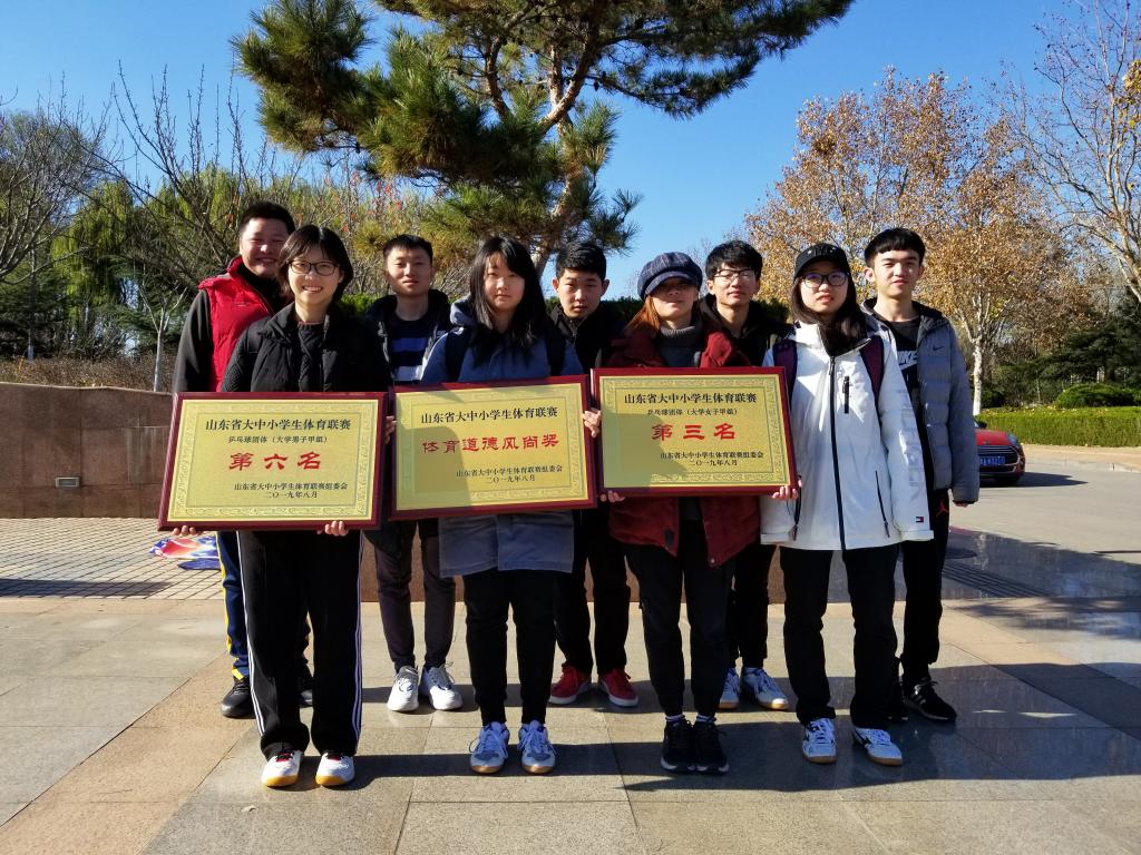 11月22日至25日,2019年山东省“中国体育彩票杯”大中小员工体育联赛乒乓球比赛(大学组)在山东商业职业技术公司体育馆举行。经过激烈角逐,公司2018级肖涵获山东省老员工乒乓球联赛女子甲组团体第三名,女子甲组单打第五名,甲组混合双打第四名,女子甲组双打第六名;2017级王焕然获男子甲组团体第六名。