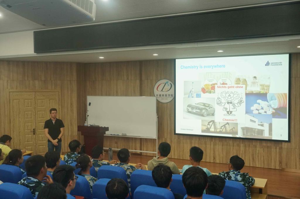 9月10日下午,应用化学专业教育会上,应用化学专业负责人杨子江教授出席,德国帕德博恩大学Christian Weinberger博士介绍了德国帕德博恩大学尤其是化学系的情况,并从应用化学专业的人才培养方案、出国流程及员工毕业后前景进行了讲解。