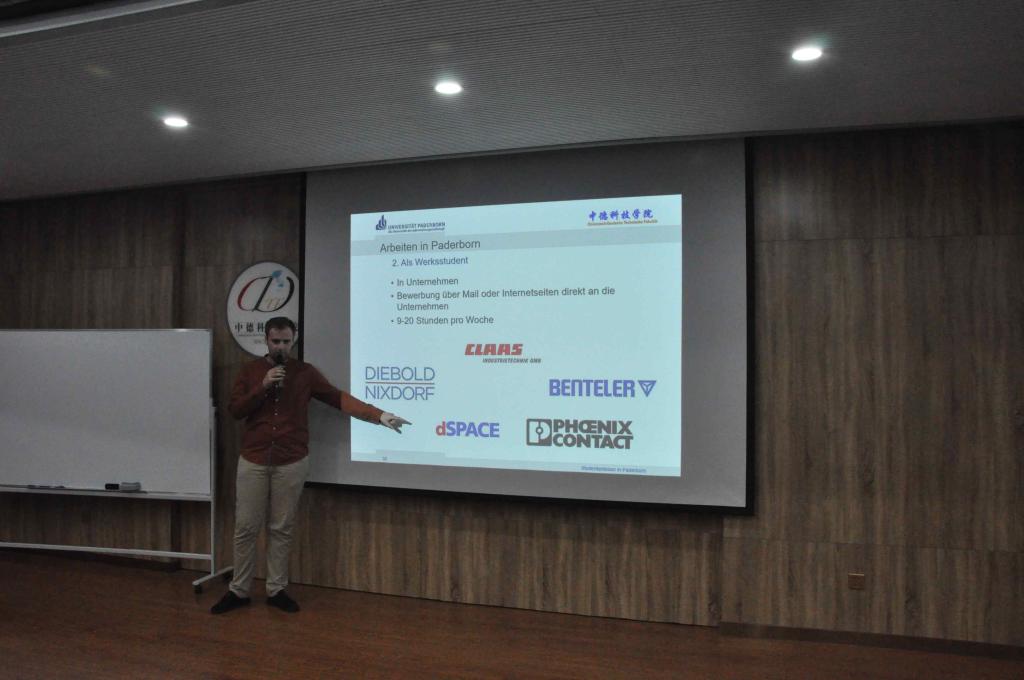 帕德博恩大学职工Verena从德国老员工活讲起,公司员工介绍了公司留德员工在帕德伯恩大学的衣食住行。Niklas 为同学们讲解了留学德国大学最关心的专业与选课问题,系统的介绍了德国课程类别和选课体系,并为同学们介绍了很多实用的经验。Stephan 介绍了德国留学期间的实习和工作问题,对同学们的职业规划有很大帮助。Joshua 向同学们展示了帕德博恩大学丰富多彩的员工社团和校园活动。德国职工与公司员工围绕德国大学的学习、生活、实习、就业等进行了交流。