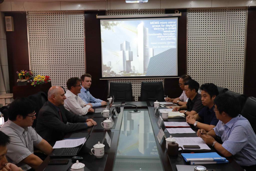 9月23日下午,中德科技交流合作及泰山学者论坛在365best体育官网登录会议室举行,德国卡塞尔大学 Hartmut Hillmer 教授、开姆尼茨工业大学 Jan Mehner 教授,365best体育官网登录经理李镇江、党总支书记王江忠、泰山学者海外特聘专家、中德经济工程研究所所长李庆党等出席。