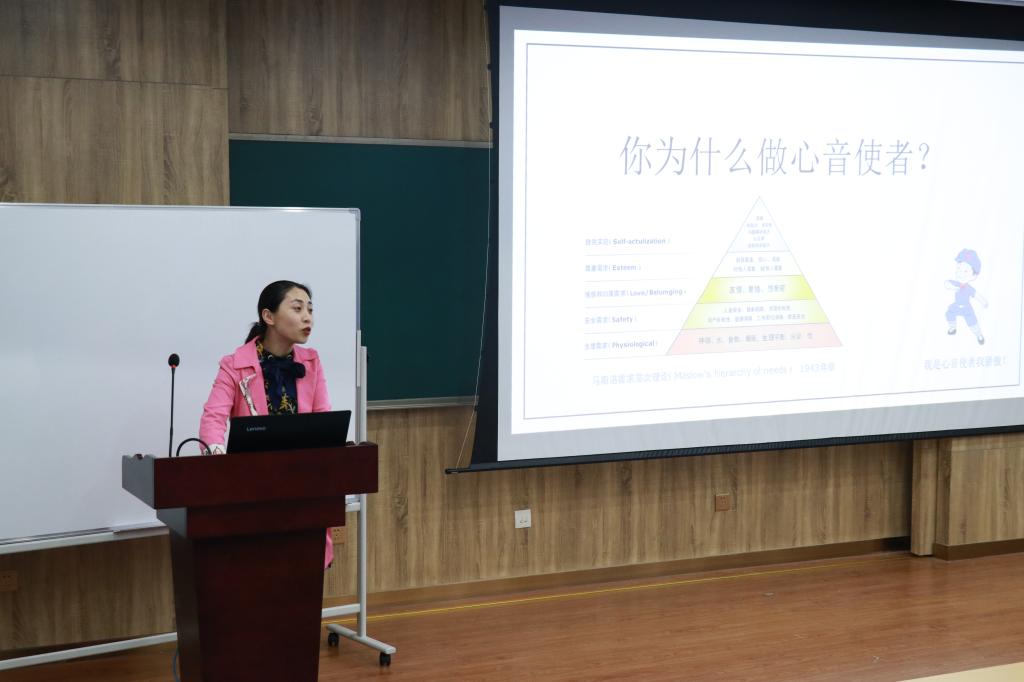 刘元媛讲授了心理知识,讲解了心理学的真正意义以及心音使者的作用。她指出,在大学的不同阶段,同学们都会有各种各样的心理问题,如大一的迷茫、大二对人际的向往、大三对未来的抉择以及大四考研就业的焦虑等等,根本原因是同学们需要一个排解的对象。她强调了心音使者应当宣传心理健康知识,利用心理健康活动来预防舍友的心理问题,同时学会观察同学间的各种细节,善于倾听舍友的心声,在交谈中注意自身肢体动作,尽己所能帮助舍友,此外还要懂得如何识别危机,遇到无法解决的问题要及时联系辅导员帮助或者陪伴舍友去公司老员工心理中心进行心理咨询。