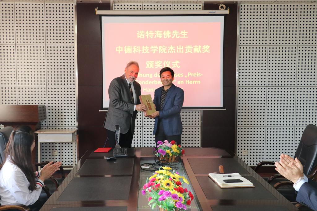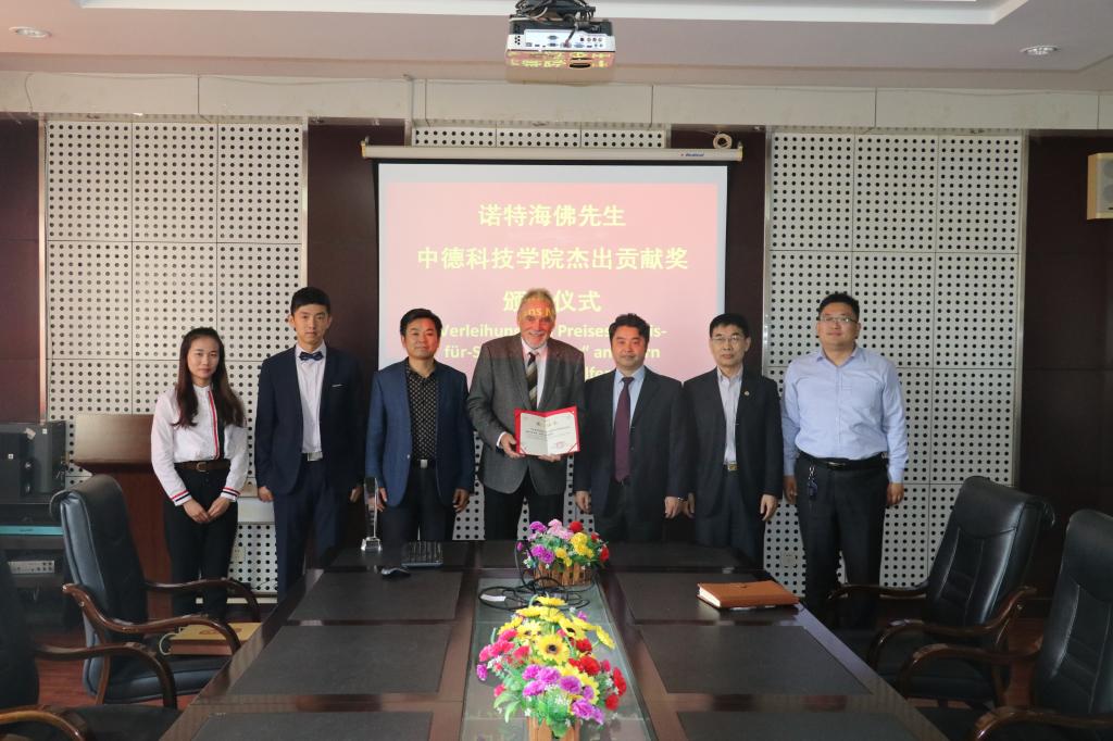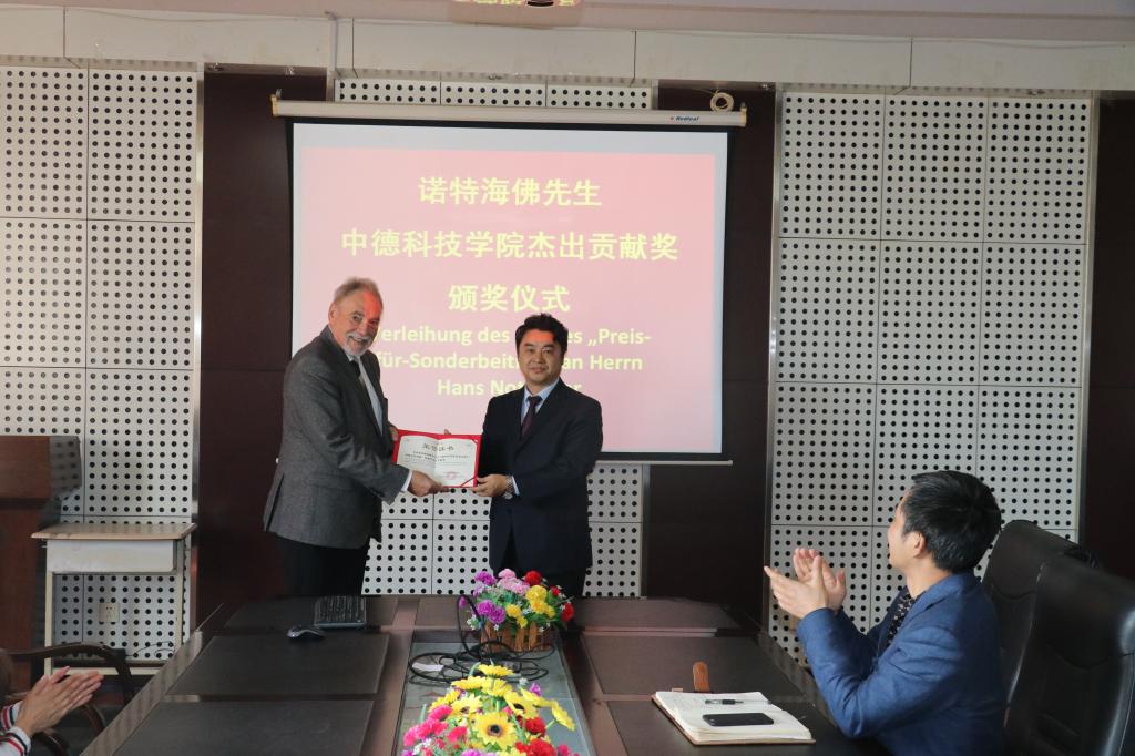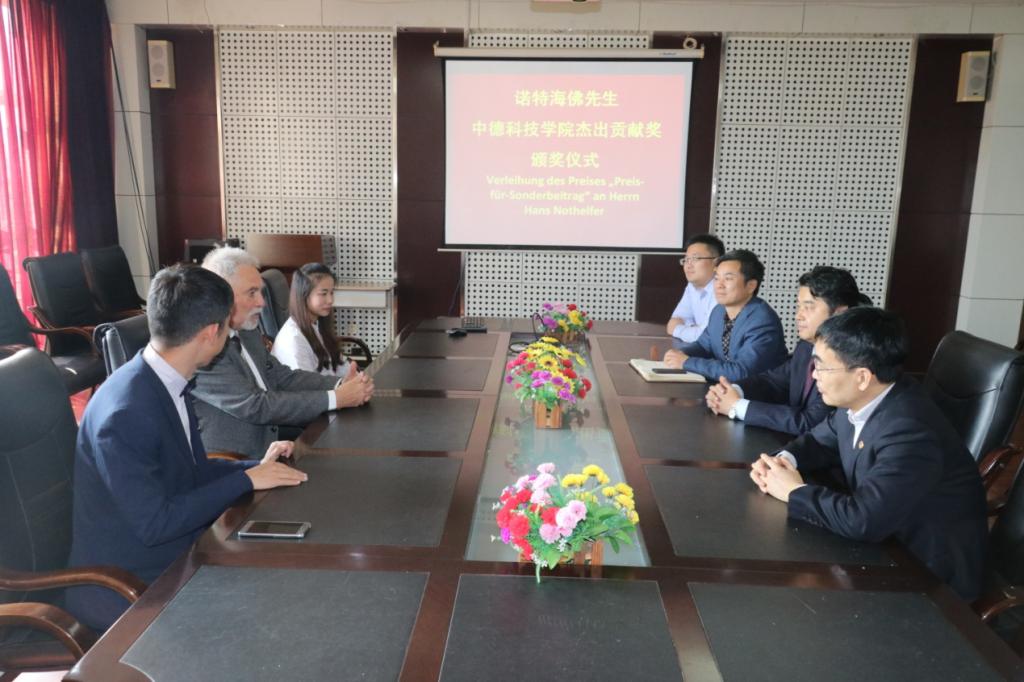 11月12日下午,Hans Nothelfer先生杰出贡献颁奖仪式在365best体育官网登录会议室举行,公司经理李镇江、党总支书记王江忠、副经理薄建全、特聘教授杨子江参加仪式。