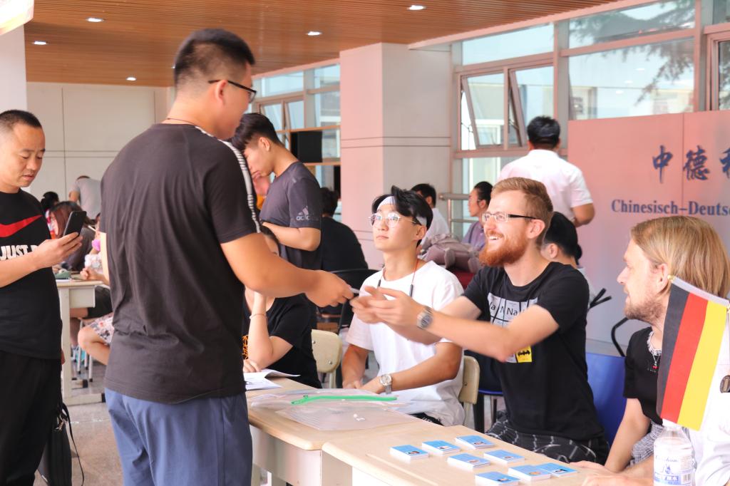 365best体育官网登录诚挚邀请本学年来华的德国职工共同参与新生注册手续的办理。职工的热情服务使前来注册的新生同学倍感亲切,在此期间新同学们也体会了中德公司的办学特色。在宿舍文化方面,公司在宿舍区域内每一个新生宿舍都插上了中德两国国旗,让员工感受到中德独有的文化氛围,此外公司为每位新生定制了代言牌,以“责任、担当、自强、进取”的中德品质激励新生,为自己代言,为公司代言,让新生较快融入中德公司这个大家庭中。