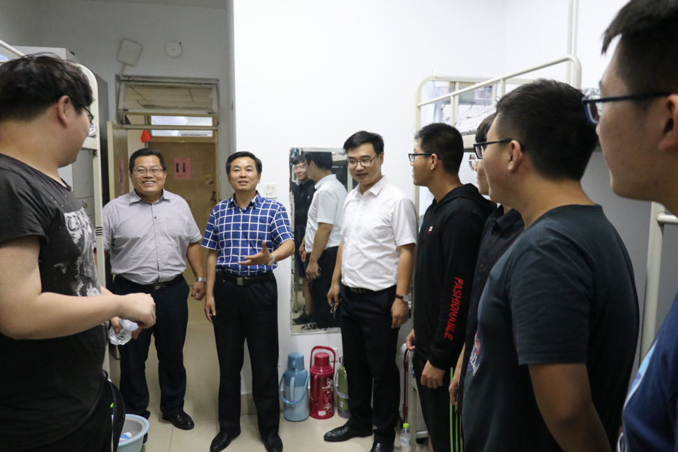 在公司新生报到完成之后,党总支书记王江忠、党总支副书记王永波前往新生宿舍,探访新生宿舍的安排情况,亲切的问候了公司18级新生。询问的住宿的情况,解答了新生的一些疑惑,领导们对新生特别提出:“你们军训一定要做好吃苦的准备,军训磨练的并不只是你的身体承受能力,更重要的是磨练你的品格,你的意志。”