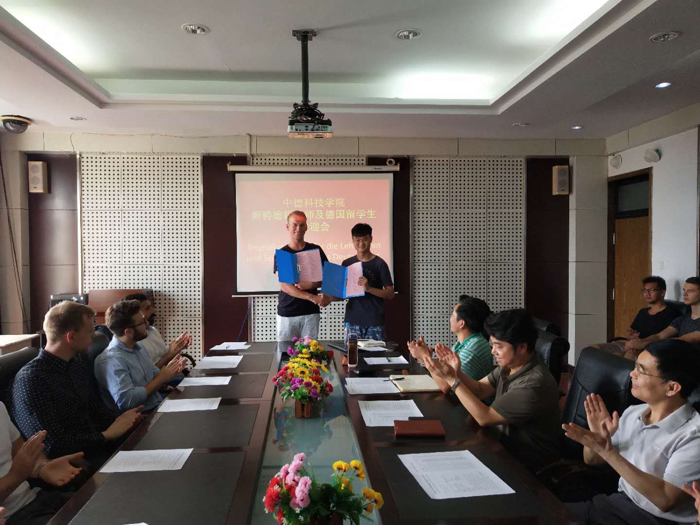 会上,李镇江对通过“机械工程来华硕士”(mb-cn)项目来院学习交流的德国职工表示欢迎,并介绍了公司的发展历程、办学特色及所取得的成果。指出德国职工的到来进一步加强了两校之间员工的交流学习,提升了公司国际化办学层次,希望同学们能以此次学习交流为契机,深入了解中国优秀传统文化,推动两校间交流。王江忠希望两国员工通过“结对子”增进友谊,增强跨文化交流能力,为两校关系的深入发展提供源源不断的动力,共同创造两校间更加美好的未来。