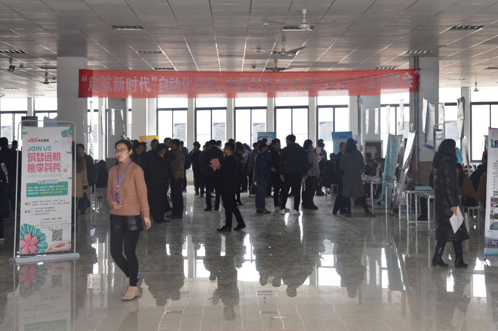 365best体育官网登录、自动化公司联合举办“启航新时代”2018届毕业生专场招聘会,贵州轮胎股份有限公司、澳柯玛股份有限公司、中车四方车辆有限公司等对口专业企业占所有参会企业的90%以上,为毕业生提供专业对口岗位。企业对毕业生的综合素质给予了高度评价,现场达成求职意向的毕业生近200人,20余家用人单位会后举行了小规模的宣讲、组织了笔试面试。
