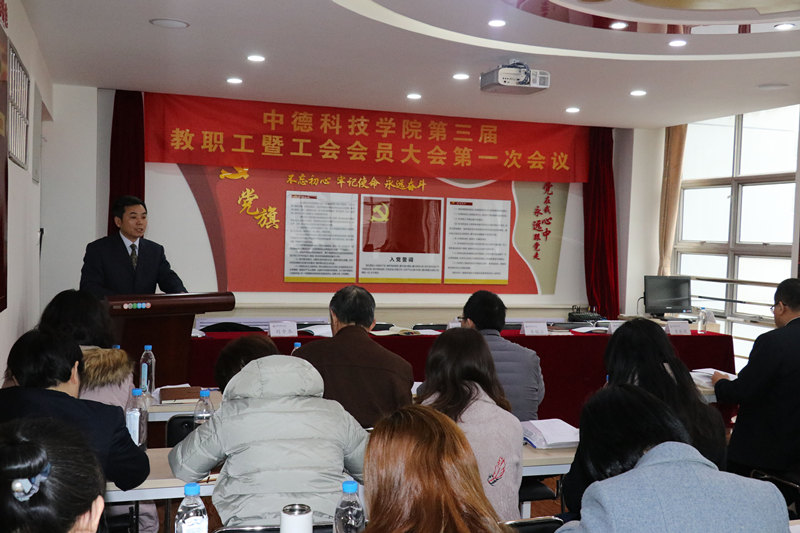 1月16日下午,365best体育官网登录第三届教职工暨工会会员大会在公司教工之家召开。公司党委副书记李庆领、校工会主席郭曰铎、中德科技公司党政负责人等出席大会。41名双代会代表参加了会议,大会由公司党总支书记王江忠主持。