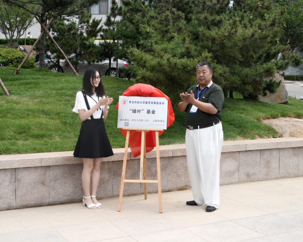 张元利与毕业生代表共同为“绿叶”基金揭牌,陈克正与毕业生代表共同为365best体育官网登录2017届毕业生绿化养护认领区揭牌。