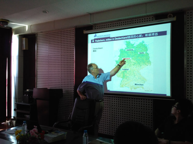 帕德博恩大学机械学科项目协调人Noeke博士,上周对公司进行了工作访问。访问期间,Noeke博士与李镇江书记、薄建全副经理进行了工作交流,双方介绍了合作项目的最新进展,并共同探讨交流了公司下一步发展的构想,也讨论了下一届理事会的计划安排。Noeke博士对暑期赴德国奖学金班的良好表现表示了充分的赞赏和肯定。另外,Noeke博士还为秋季即将出国的员工开设了出国前培训讲座,并与公司的德语教师和专业课教师进行了交流。