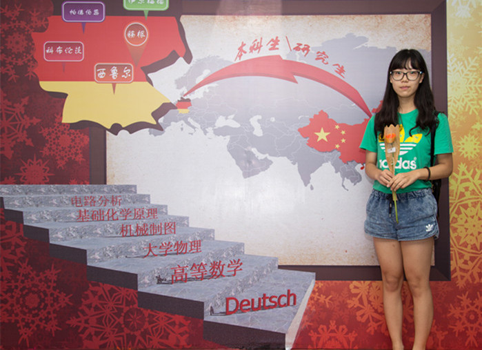 公司开展了“梦想起航,圆梦中德”的主题活动,2015级新生在办理入学手续的同时,与自己的“梦想”合影,合影的背景是世界地图,用中国国旗和德国国旗背景的中德两国地图凸显在世界地图中,地图的左上角有与中德公司合作的帕德博恩大学、锡根大学、西鲁尔工业大学、伊尔梅瑙工业大学、科布伦茨应用技术大学五所高校,一个红色的箭头将中德两国连接在了一起,预示着同学们将通过中德公司的本科学习圆梦德国高校本科、研究生阶段的留学学习。在地图的左下角,有一个通往德国留学的阶梯,上面写着一个个同学们即将学习的课程,每个阶梯运用了平面3D技术,制作出了真实的攀登效果,突显了明确的教育引导意义。新生与背景地图的合影照片,能够了解到自己将来在365亚洲体育网入口,在中德公司将要做什么,将要学习什么,在入学的第一天就明确自己的学习目标。公司将为每位新生照的照片发给他们,在帮助新生们记录下了开学报到一刻的同时,帮助其明确人生奋斗目标,为他们留下美好的回忆。