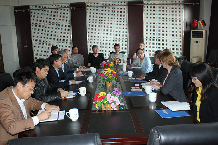 王守城对勒曼董事长一行的到访表示热烈欢迎,介绍了公司的发展历程、学科特色,以及公司近年来与德国五所高校在联合培养学士、硕士和博士等方面的情况。勒曼简要介绍了霍夫应用技术大学的情况,希望在机械工程、应用化学专业与公司开展合作。双方就联合培养硕士研究生初步达成了合作意向,每年公司将有10名本科毕业生赴该校攻读硕士研究生。