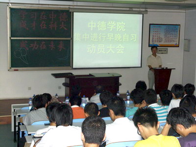 中德公司实行集中早晚自习制度是公司加强学风建设,推动“学习在中德成才在科大成功在未来”主题教育实践活动深入开展的重要举措。据悉,公司实施的集中早晚自习制度将每周周一至周五的早上和晚上分为4个单元,每个单元3个学时,每个单元均配备3到5名德语、专业和管理的老师进行辅导和管理。目前,07和08级的员工均须参加集中早晚自习。
