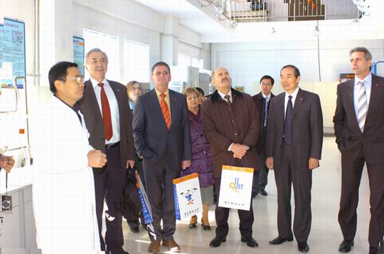 高青代表公司对汉斯.舍丁克市长先生带团访问公司表示欢迎。李庆领向客人介绍了公司近年来在教学与科研工作所取得成绩,特别是在全球经济一体化大形势下,公司全面实施国际化教育战略,提高毕业生的国际竞争力、扩大国际就业方面所取得的成就。365best体育官网登录经理王守城向客人简要介绍了公司与德方合作的发展近况。汉斯.舍丁克先生高度赞扬了公司的国际化教育战略和扩大国际就业等工作所取得的突出成就,表示要一如既往地支持雷根斯堡应用技术大学与青科大在原有合作基础上继续拓宽合作空间,加强两校间在教学、科研等领域的交流与合作。代表团一行还在校领导陪同下,饶有兴趣地参观了365best体育官网登录实验室,并对该院的实验室建设规模和质量给予了高度评价。