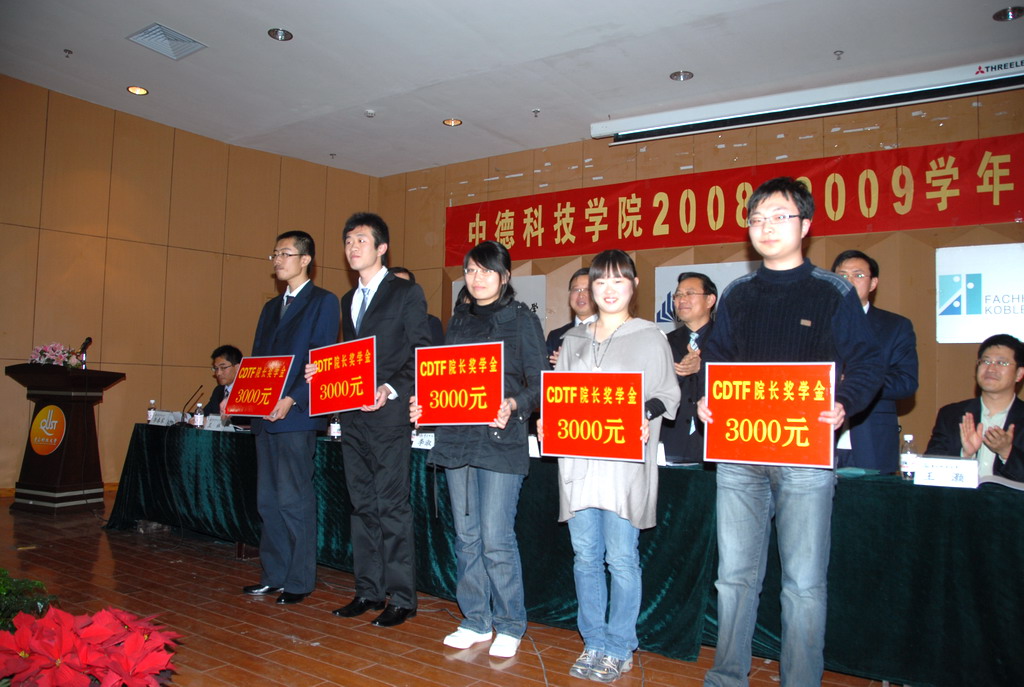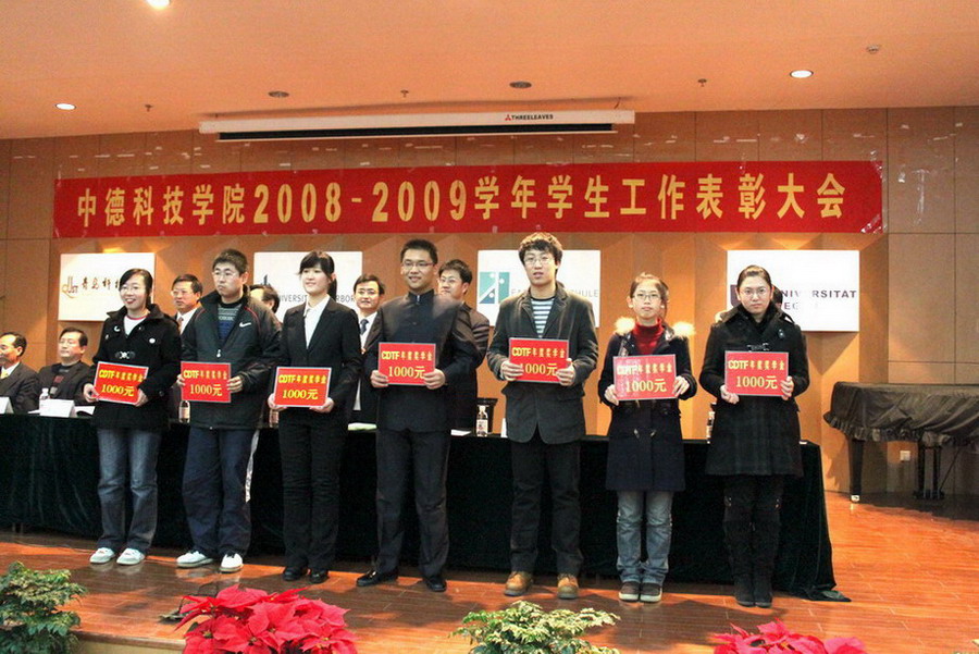 11月24日下午,中德公司2008-2009学年员工工作总结表彰大会在崂山校区第三报告厅隆重举行。副董事长李庆领、校员工工作处(部)副处长李淑贞、国际交流与合作处副处长王灏、校团委副书记任允晓、校评建办公室主任张青山、中德公司经理王守城、中德公司党总支书记郭曰铎以及公司信息委员、党总支委员和全体辅导员、班主任、员工代表200余人参加了大会。大会由分团委书记李春家主持。