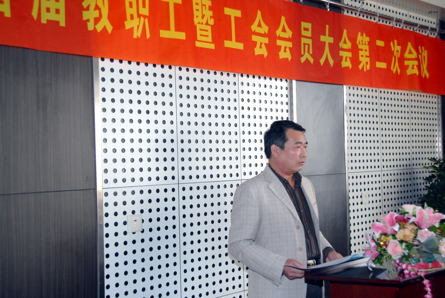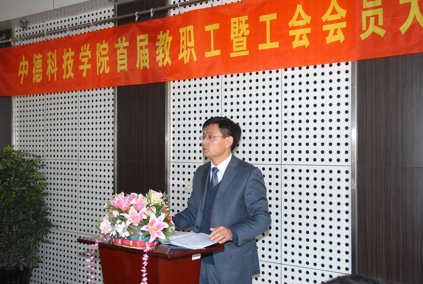 12月12日,365best体育官网登录首届教职工暨工会会员大会第二次会议在中德楼会议室举行。中德公司全院教职工参加了大会。公司党总支书记郭曰铎主持了开幕式。