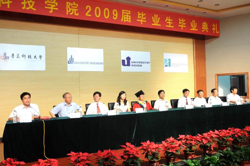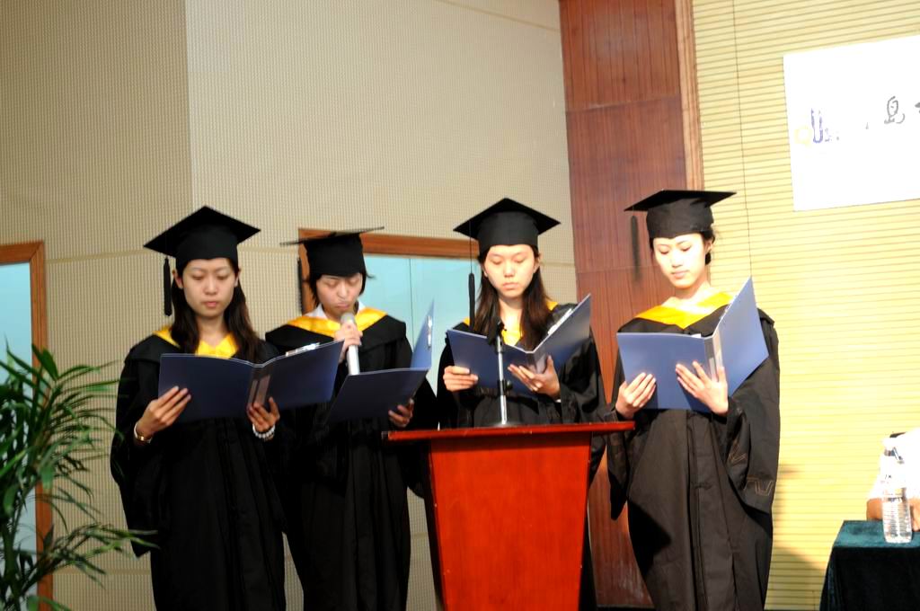 在这个充满热情的季节,6月27日下午2点30分,中德公司2009届毕业生典礼在崂山校区第一报告厅隆重举行。365亚洲体育网入口学士学位评定委员会主席、党委常委、副董事长李庆领、校团委书记刘传华、员工处副处长李淑贞、公司经理王守城、公司党总支书记郭曰铎以及各部门负责人、全体政治辅导员09届全体毕业生、部分员工家长参加了典礼。公司分团委书记李春家主持了典礼。