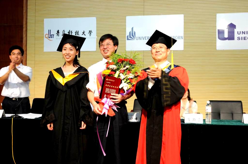 毕业典礼上经理王守城代表公司全体师生员工向圆满完成学业的81名毕业生同学表示最热烈的祝贺。向为培养广大同学而付出了辛勤劳动的广大教职员工、家长和社会各界表示最衷心的感谢。王守城在讲话中回顾了同学们在校学习五年来公司的发展历程,他指出,这五年是公司和公司历史上发展最快的五年,公司顺利通过了教育部本科教学水平评估,本科生规模保持稳定,研究生规模逐步扩大,新生生源质量进一步提高;公司顺利通过了德意志学术交流中心和中华人民共和国教育部的评估及复核验收,取得了教育部颁发的中外合作办学许可证书;在与帕德博恩大学合作的基础上,公司又先后与科布伦兹应用科技大学和锡根大学签订合作办学协议,从而走上了规范化、多元化发展的轨道;公司的团队建设取得了重大突破,合作办学专业由一个增加到三个,员工出国人数逐年增加;团队队伍建设取得较大进展,目前德语教师人数已经达到25名,其中签约德籍教师9名;几年来中德双方的学术交流不断加强。讲话中,王守城向毕业生提出三点希望,一要秉承传统,务实创新。他指出科大以"实"建校,以"实"兴校。希望同学们牢记母校“吃苦耐劳,坚忍不拔,朴实无华,甘于奉献,同心协力,勇承重载”的橡胶品格,在各自的领域里不断取得新的成就。二要海纳百川,追求卓越。他指出一滴水只有溶入大海方显生命和活力,同样,一个人只有融入团队才会发挥出更强大的力量。希望同学们在今后的学习和工作岗位上既要谦虚谨慎、不骄不躁,又要海纳百川,善于听取不同的意见。要胸怀祖国、放眼世界,为民族的崛起,为国家的繁荣做出应有的贡献,无愧于科大人的称号。三要留住梦想,谨慎选择。他指出激情与梦想是青年人的宝贵财富,人生的选择总是与责任同在。面对全球化竞争中建设创新型国家的艰巨挑战,面对中华民族伟大复兴的历史机遇,我们都必须勇于面对现实,勇于承担责任;决不逃避,决不弃权。只要坚持不懈地做事,最后终能成功;若不做事,则肯定不会成功。王守城在讲话最后指出科大永远是我们大家共同的家园,希望同学们常回来看看,衷心祝愿同学们身体健康,工作顺利,家庭幸福,事业有成!