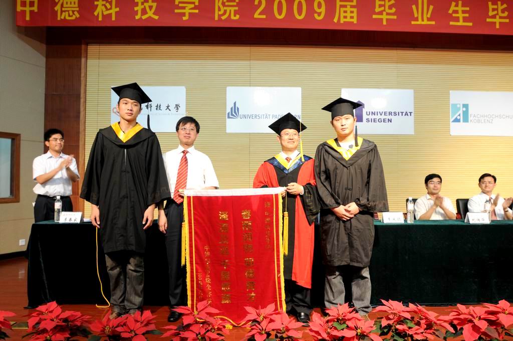 毕业典礼在毕业生纪念片《88个春天——中德2009届毕业生纪念册》中拉开帷幕,伴着优美的《栀子花开》音乐,每一个记录着同学们五年生活的镜头带领大家再一次回顾了大学几年的青春印记,回顾了同学们曾走过的路,回顾了真诚相对过的同窗好友,回顾了母校的点点滴滴,花花草草。