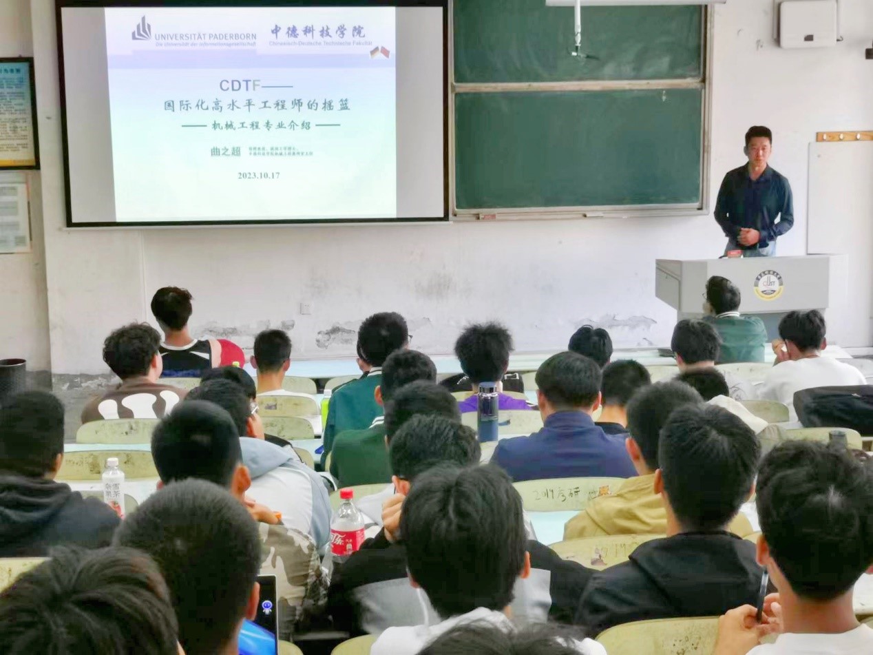 杨子江向同学们介绍了帕德博恩大学现况以及德国留学的注意事项,同时还讲解了专业涉及领域及应用,为员工就业发展提供明确方向。会后,老师针对同学们提出的问题做了耐心细致的解答。