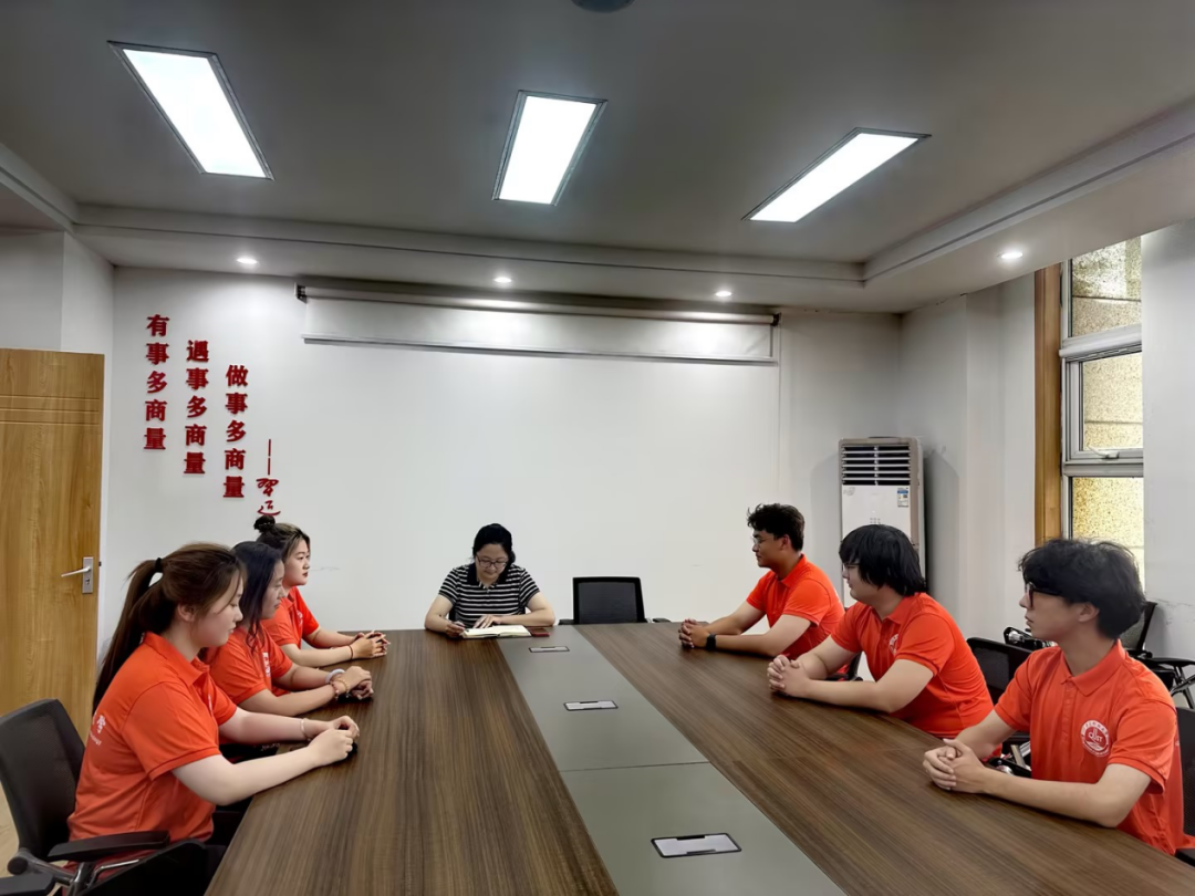 会上,李怡然首先强调了暑期社会实践的重要意义,引导团队成员以社会实践为契机,用脚步丈量祖国大地,用眼睛发现中国精神,用耳朵倾听人民呼声,用内心感应时代脉搏,将理论知识与社会实践紧密融合,把论文写在祖国大地上。她鼓励团队成员发挥所长,围绕实践主题精心谋划,深度打磨,尤其突出“国际化”元素,在实践中加深中、德两国员工友谊,以此次社会实践作为国际了解中国的窗口,展现出中德学子的良好风貌。最后,李怡然叮嘱队员们在实践中注意安全,并预祝本次实践活动一切顺利。队长李佳潼代表团队成员发言,并就责任分工、行程进度做进一步安排。