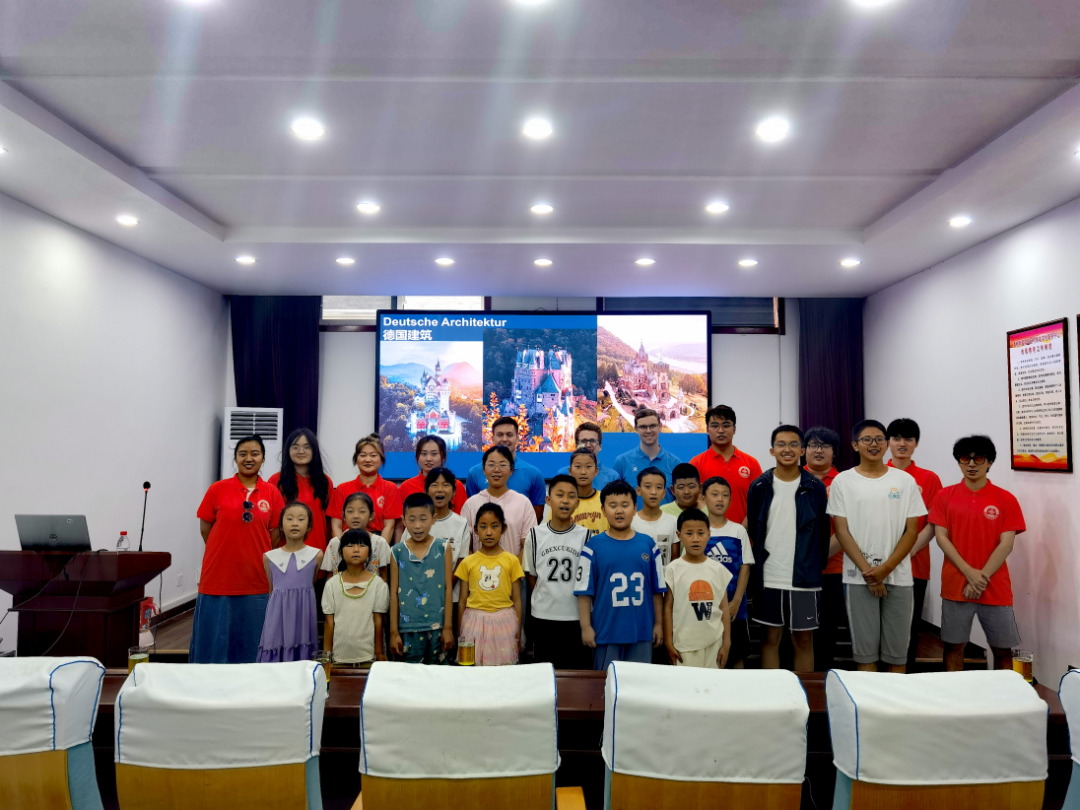 接下来,在曲之超教授的翻译下,德国职工们为孩子们介绍了德国的标志性建筑、自然风光及特色美食,孩子们被深深地吸引,争先恐后提出他们感兴趣的问题,职工们耐心地一一解答。队长李佳潼借机询问孩子们的理想是什么,不少孩子表示要好好学习,考上理想的大学,也有的表示想去德国看一看。李佳潼鼓励孩子们用知识武装头脑,待学成后投身乡村振兴和祖国建设中去。