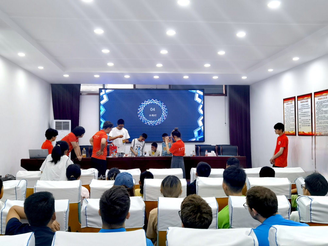 经过简单的自我介绍,实践队成员们带来了“泡沫喷泉”“法老之蛇”等趣味化学小实验。队员们用浅显易懂的语言解释了实验原理,并现场邀请学堂的孩子们参与到实验中来。孩子们踊跃参与、积极尝试,在欢乐的氛围中学习到了化学小知识。最后在实践队成员的指导下,孩子们动手制作了好看好玩的“水母灯”。通过化学小实验,不仅让孩子们体验到了乐趣,也在他们心里埋下了“科学”的种子。